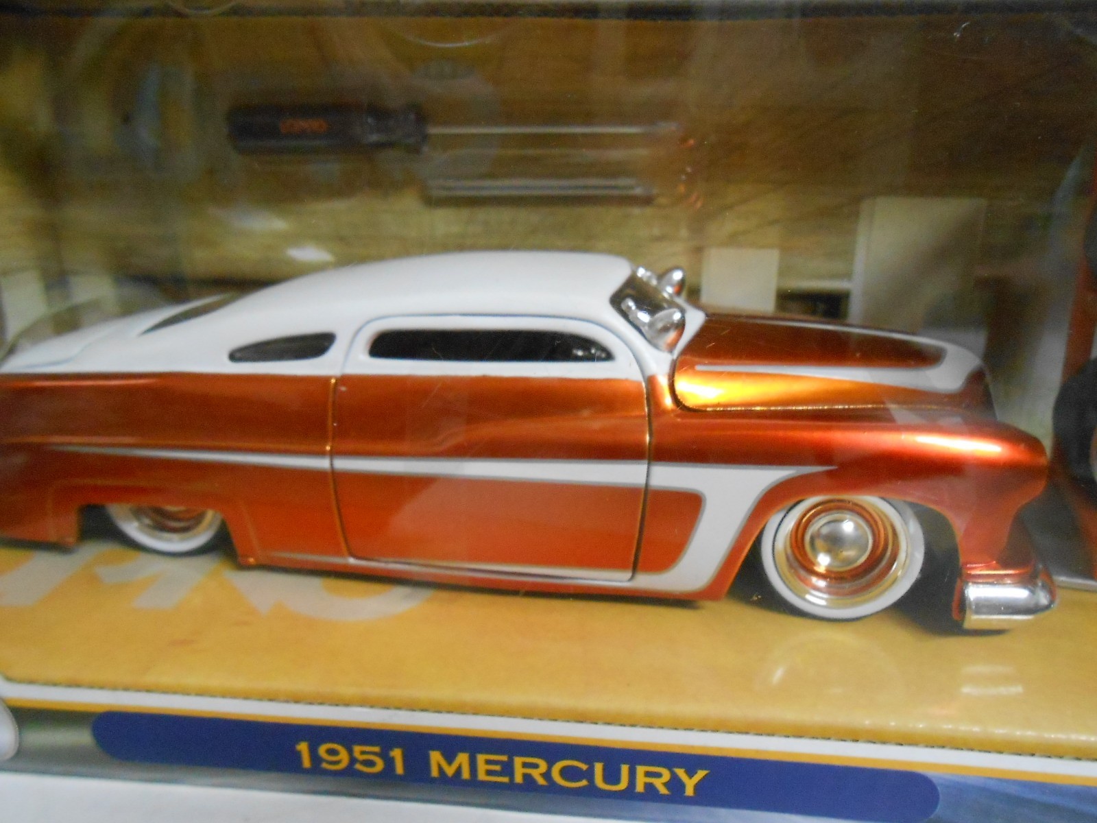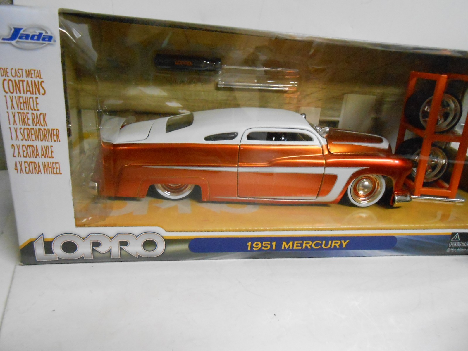 как выглядит JADA LOPRO 1951 MERCURY METALLIC ORANGE DIECAST CAR WITH ACCESSORIES BOX фото