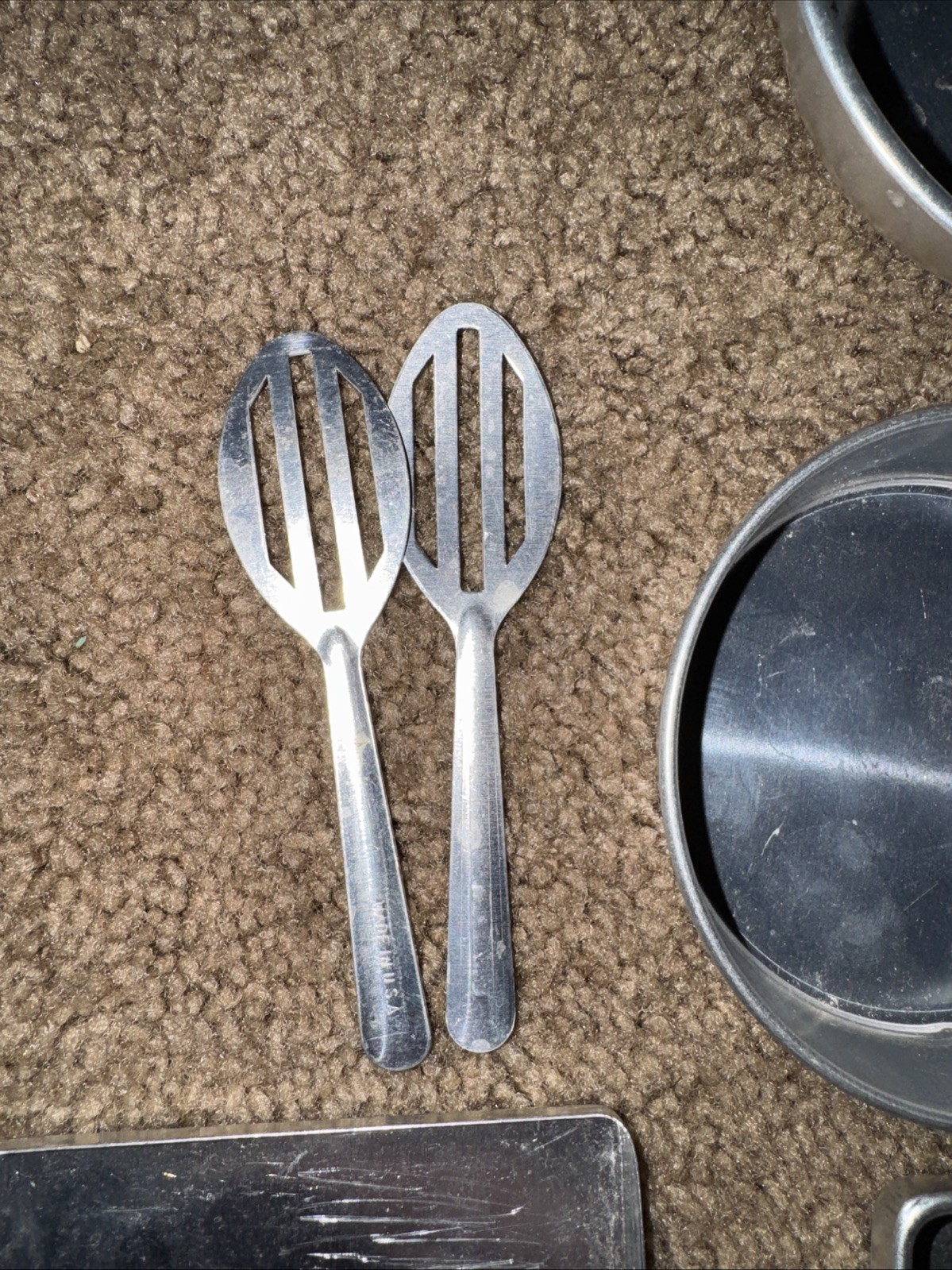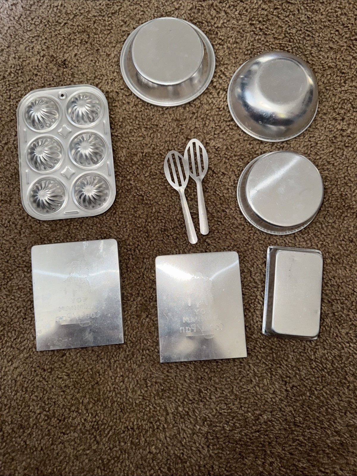 Vtg. Children s Aluminum Pans Utensils Tins 9 Piece