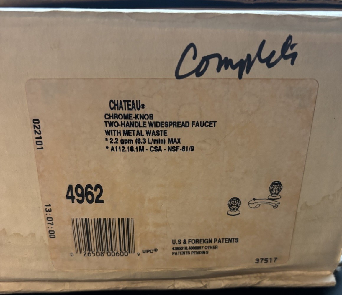 Moen Chateau 4962 Widespread Bathroom Faucet - Chrome Crystal Knobs - As Is
