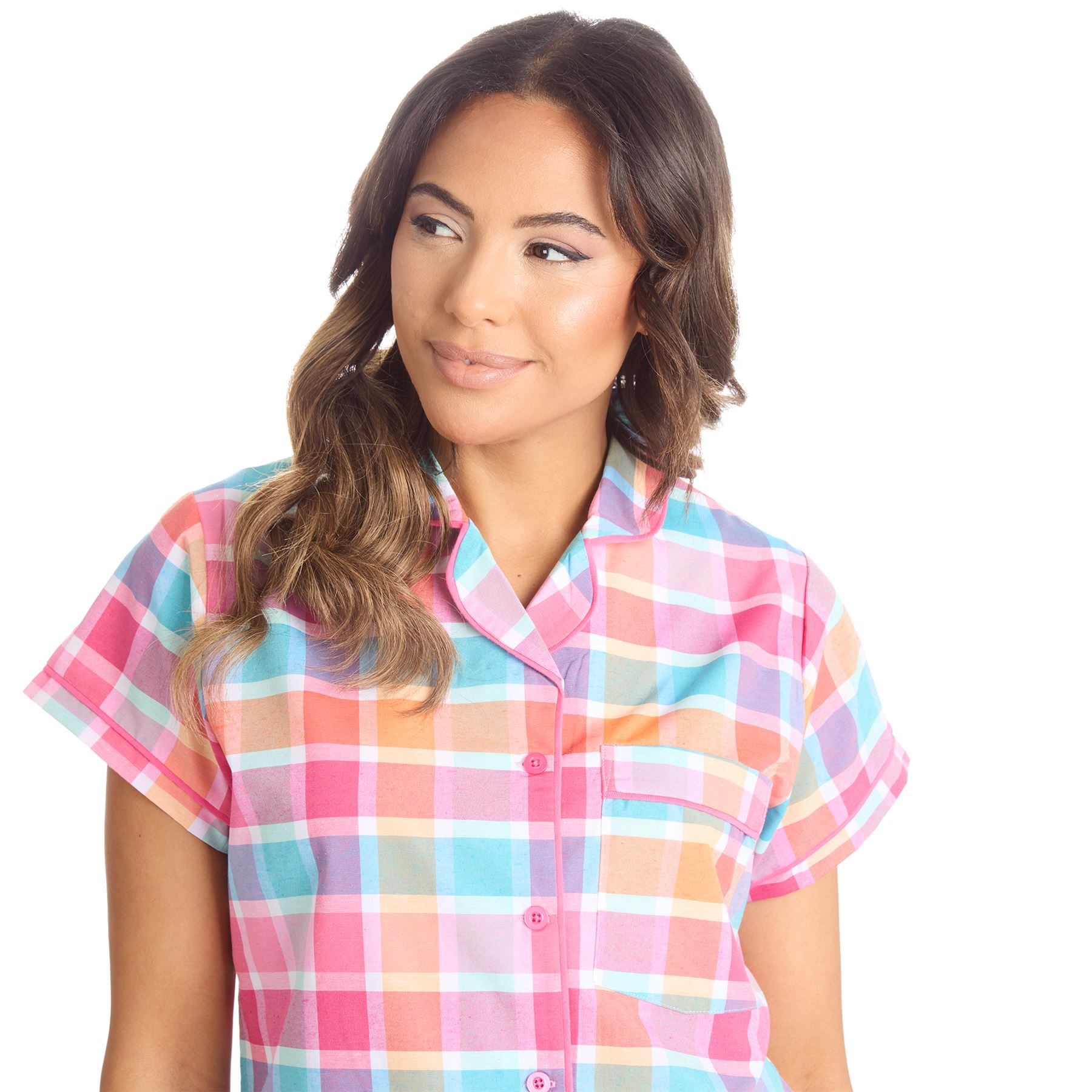 Ladies Short Pyjamas Woven Lightweight Tailored Button Through Pyjama Set PJs