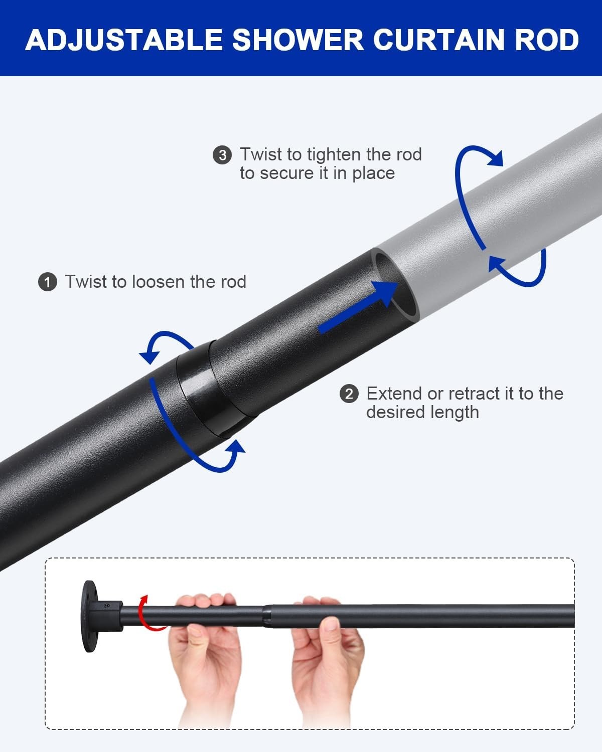Heavy Duty Adjustable Shower Curtain Rod 56-76 Inch - Rustproof Elegant Black