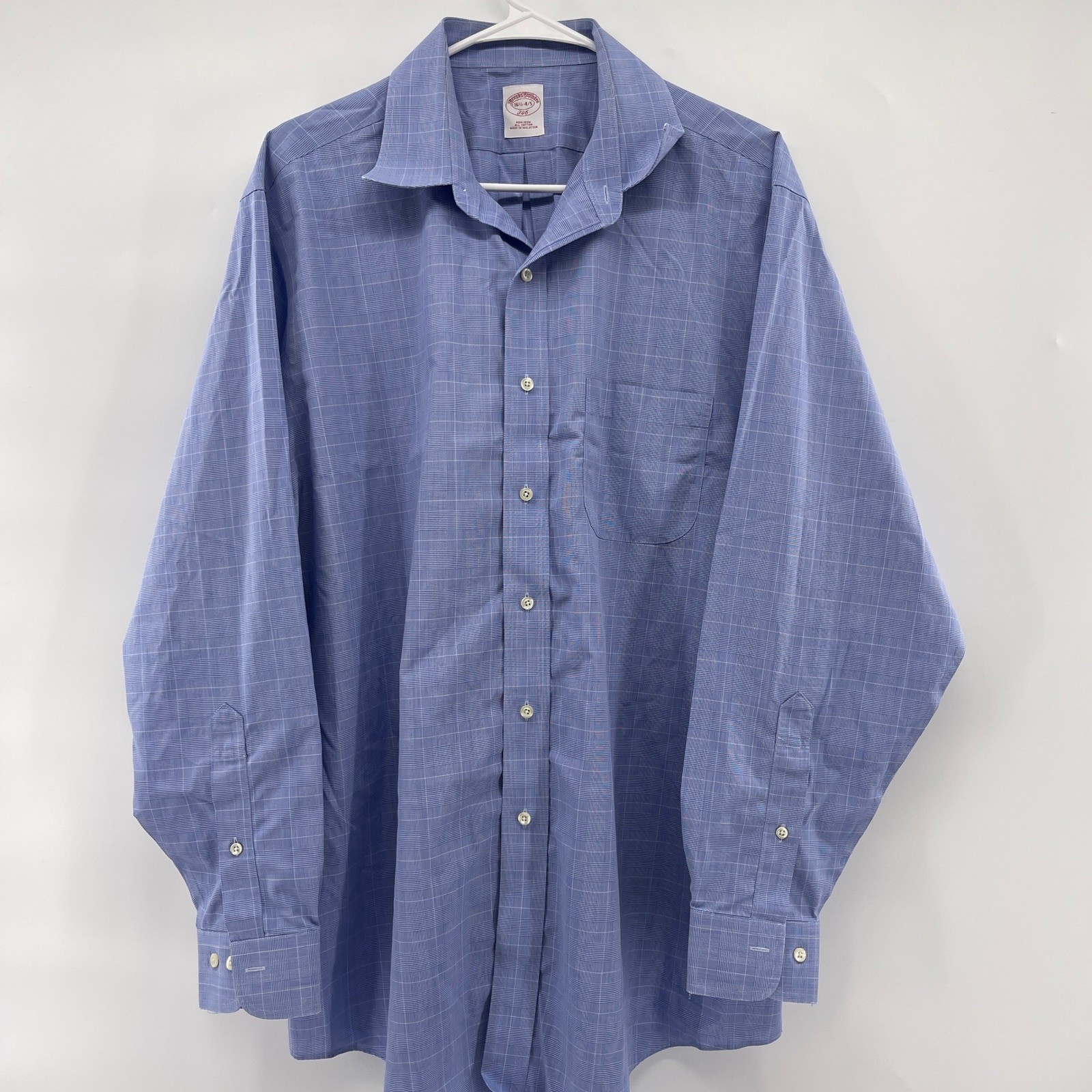 как выглядит Brooks Brothers 346 Mens Dress Shirt 16 1/2-4/5 Blue Checkered фото