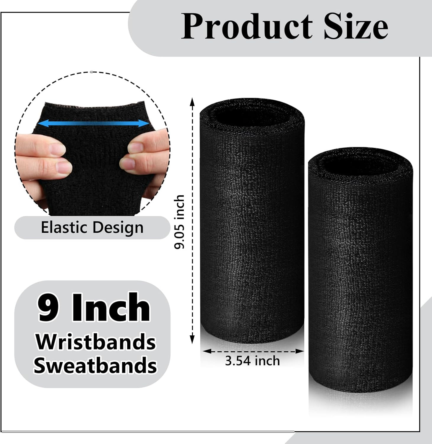 2 Pcs 9 Inch Long Wristbands Sweatbands Black Large Sweat Bands Wristbands Wrist
