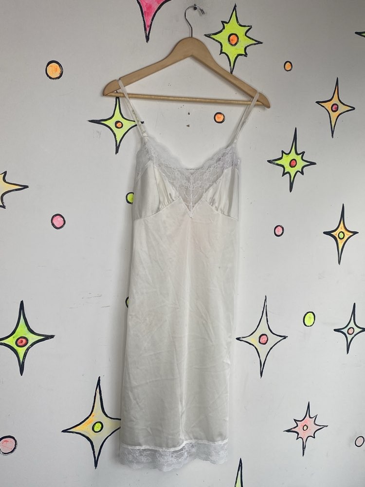 как выглядит White Lace Trim Slip Dress Vintage Coquette Babydoll Lingerie - Small фото