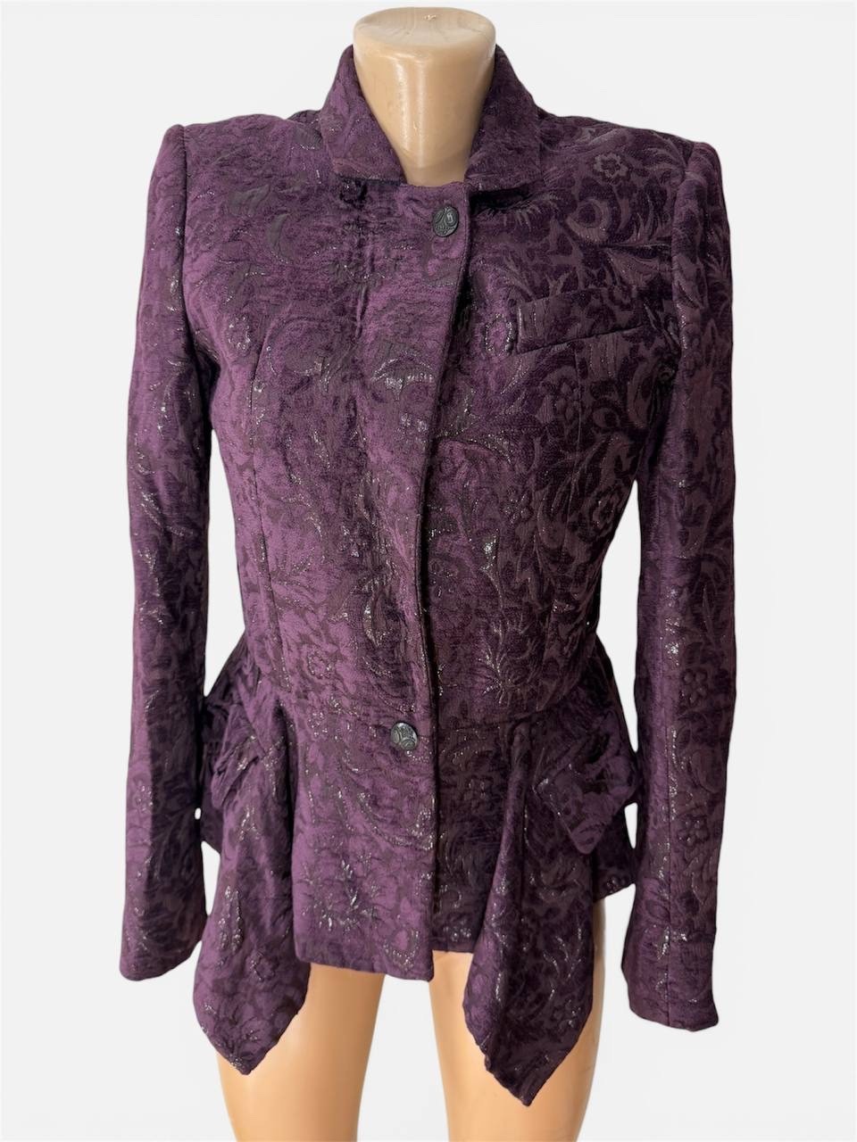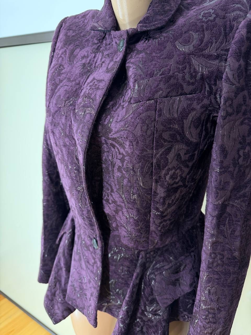 как выглядит Gucci Runway F/W 2012 Jacquard Ruffle Peplum Jacket Purple Frida Giannini фото