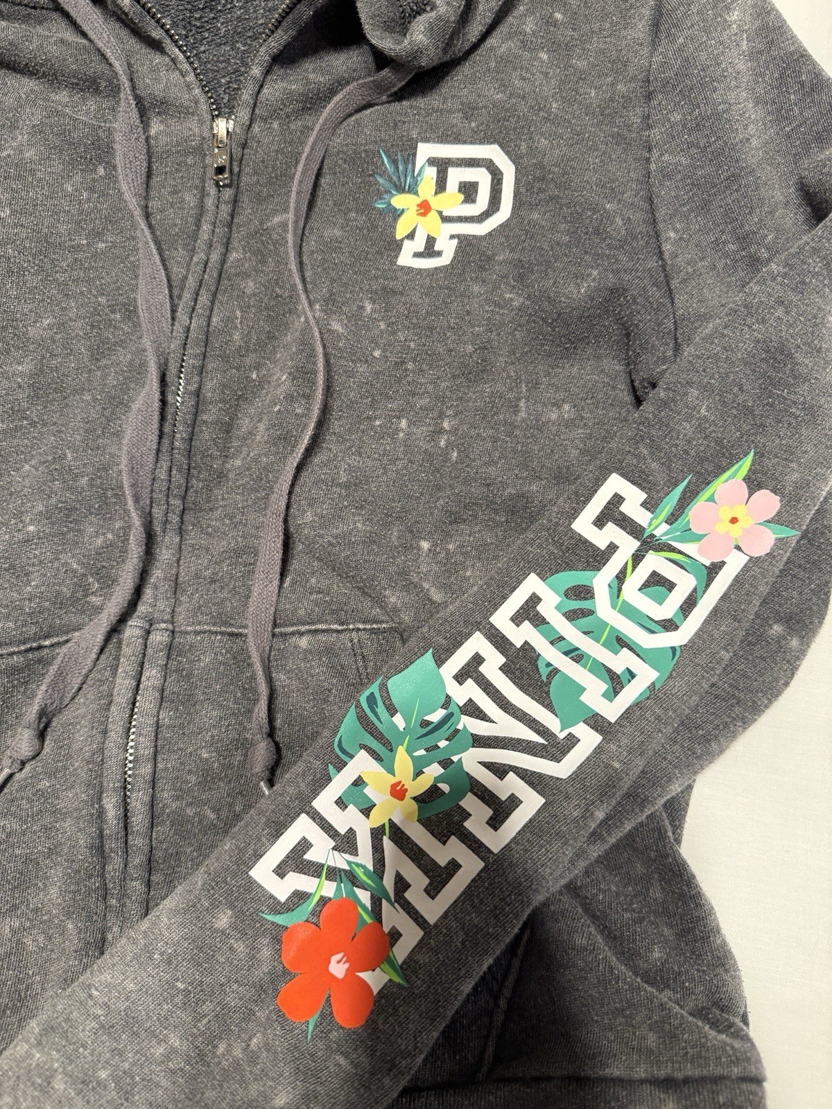 PINK Victoria's Secret Gray Full Zip Hoodie Floral Logo Crew Neck Women's Size S