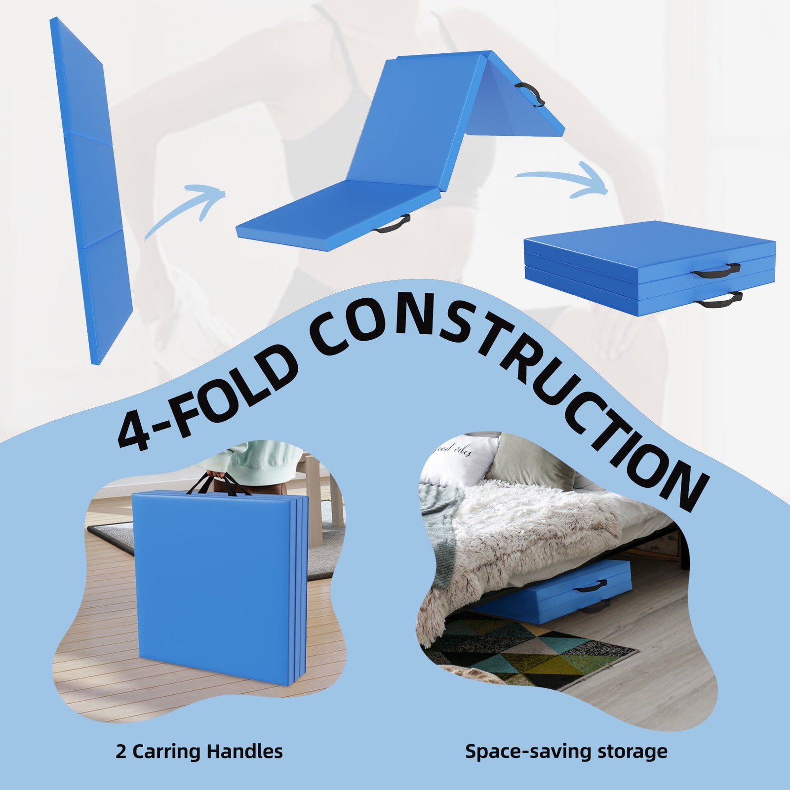 Convenient Carry Handles: Built-in handles make it easy to fold and move the mat anywhere —