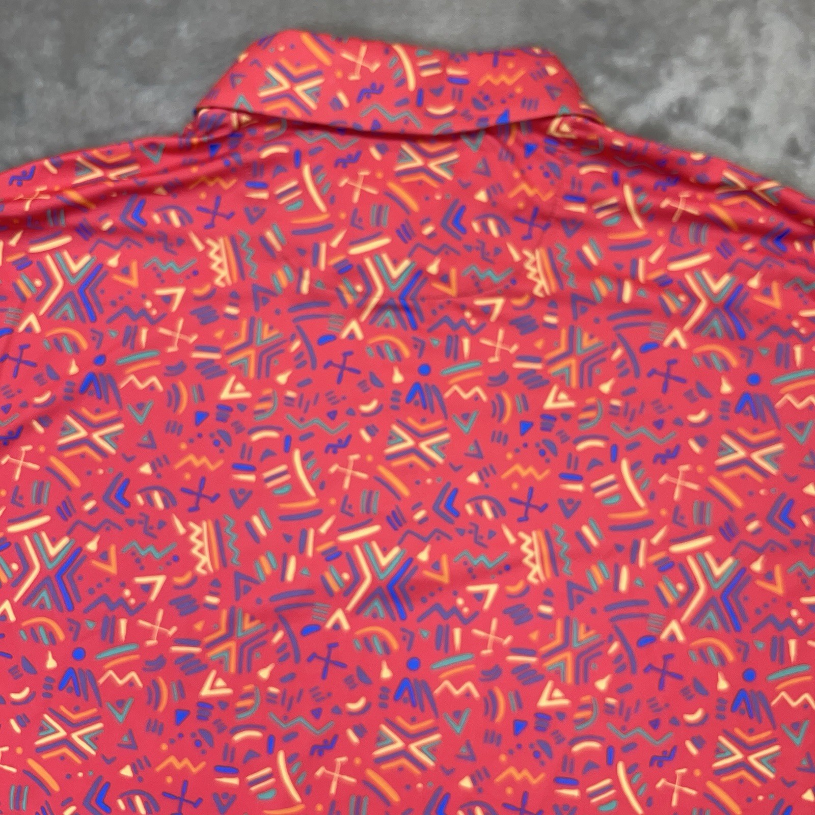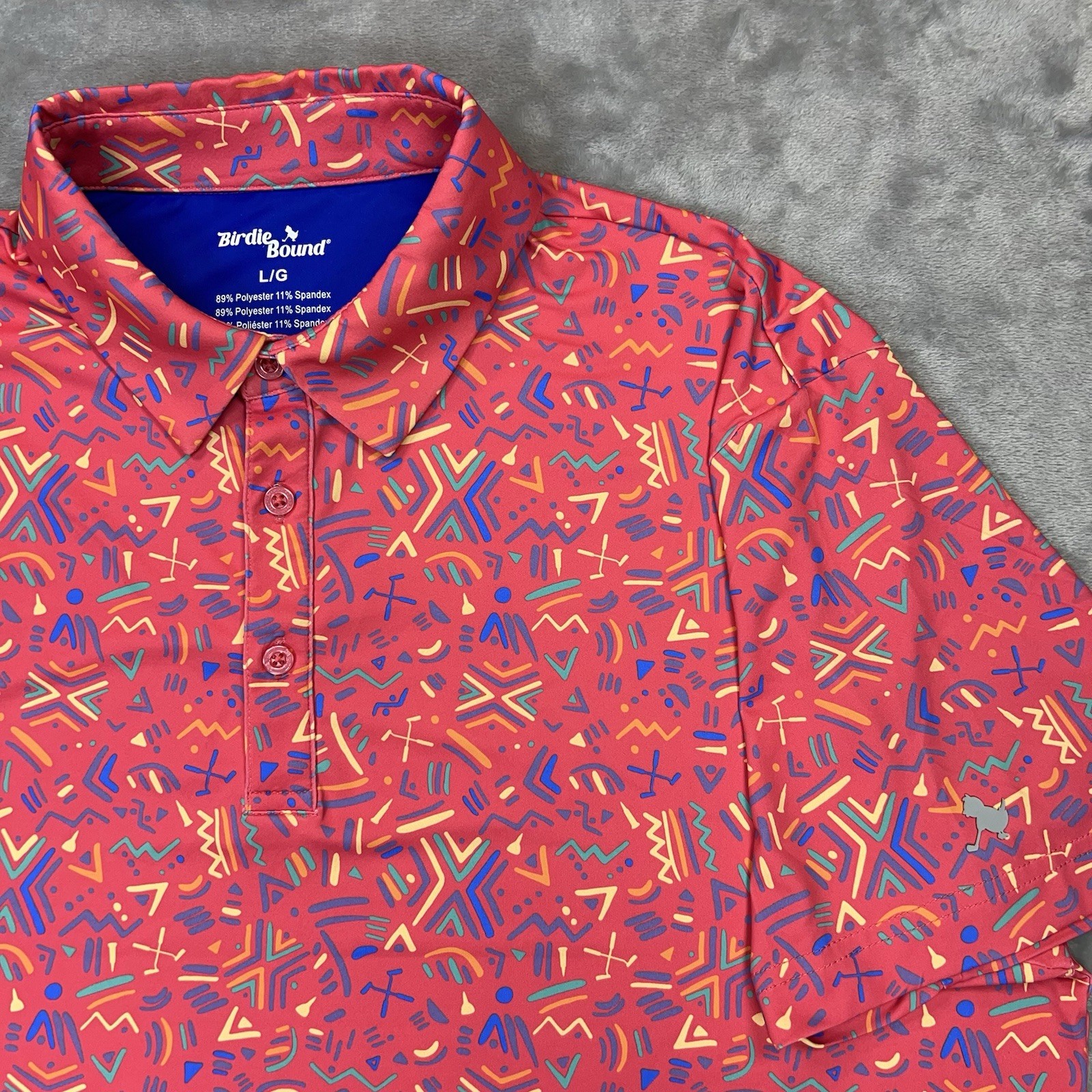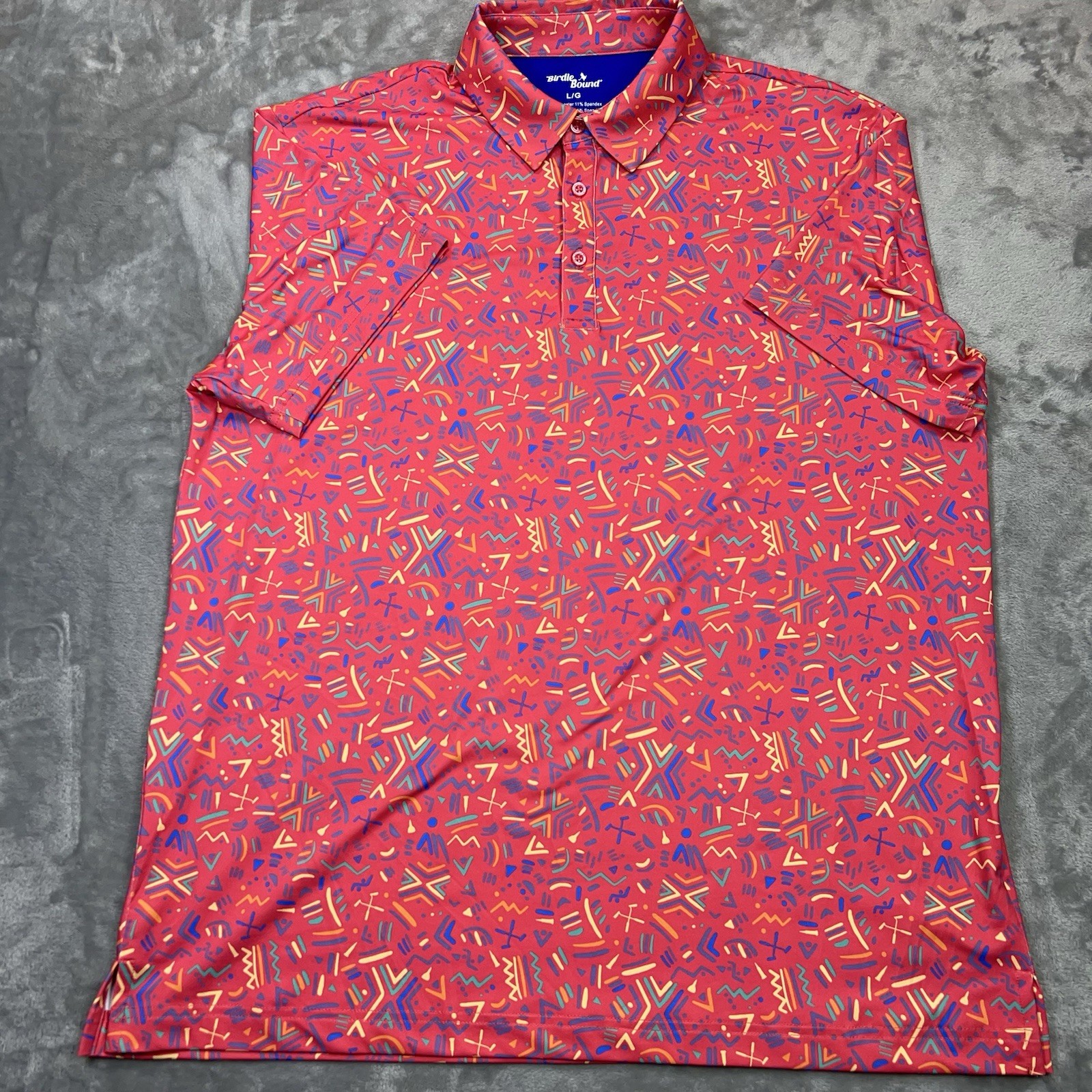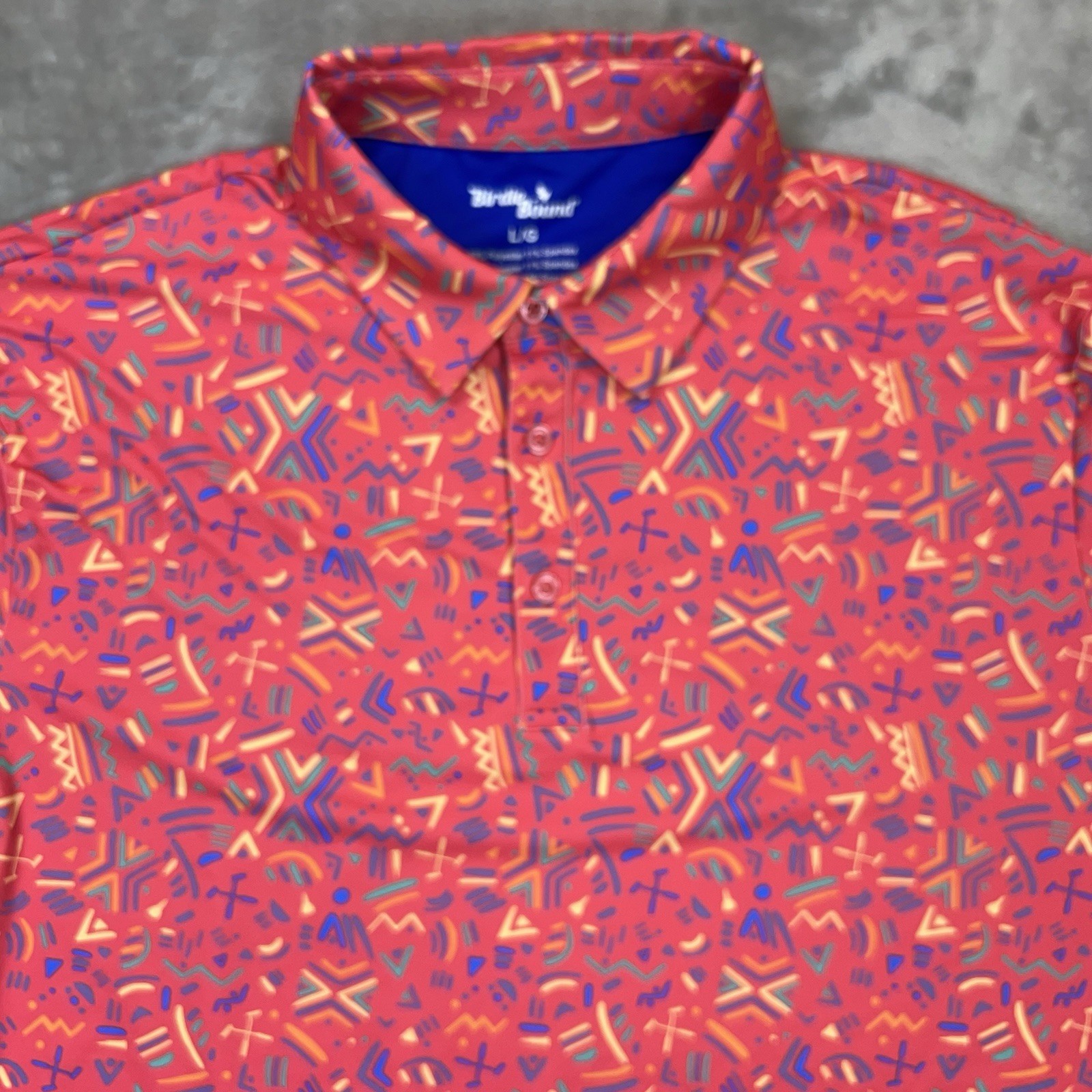 BIRDIE BOUND Polo Shirt Mens Large Golf Performance Party Confetti Abstract Pink