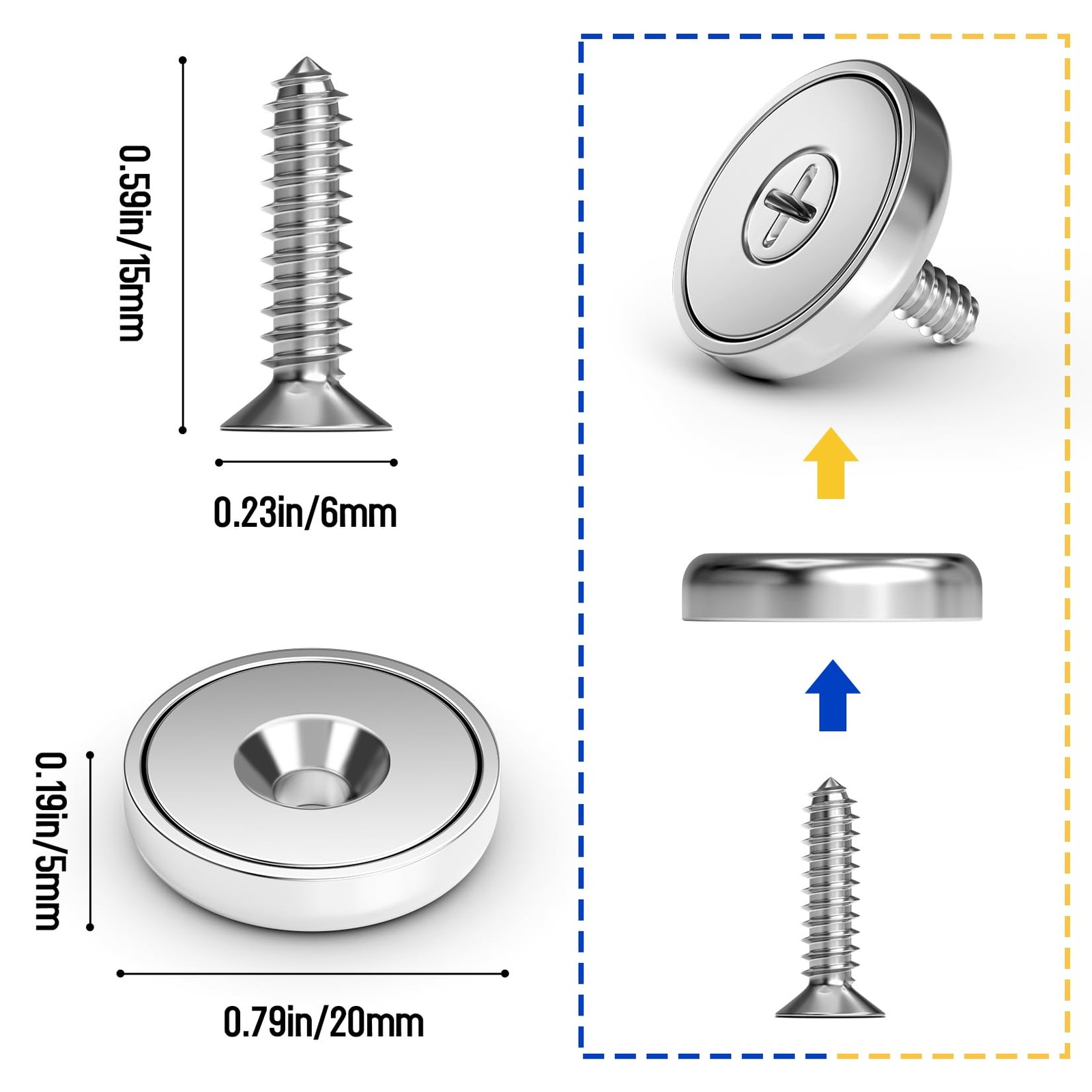 • Magnets with Holes 16 Pack 40LBS Neodymium Cup Strong Rare Earth