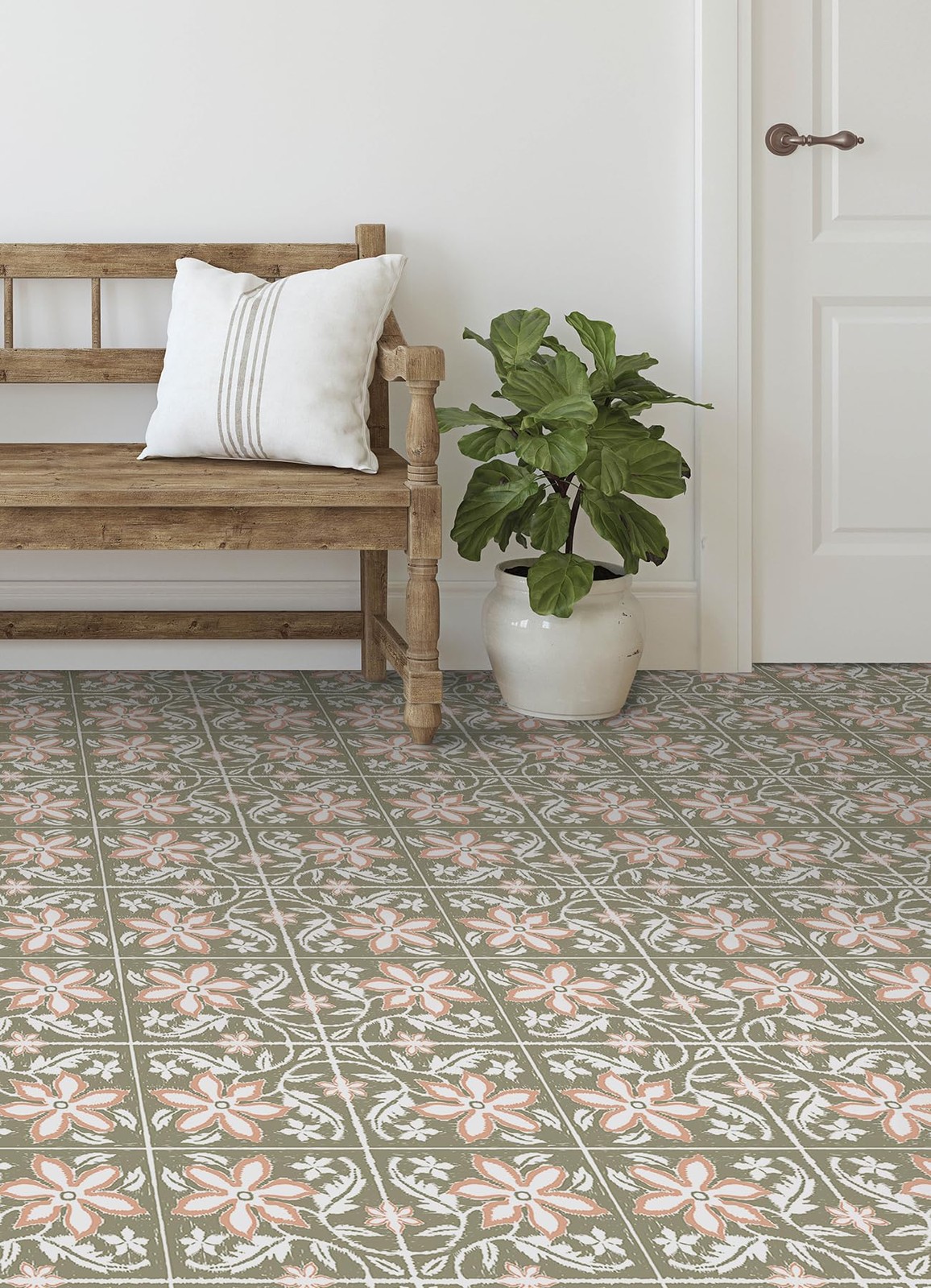 Lillium Green Peel and Stick Floor Tiles, FP6303
