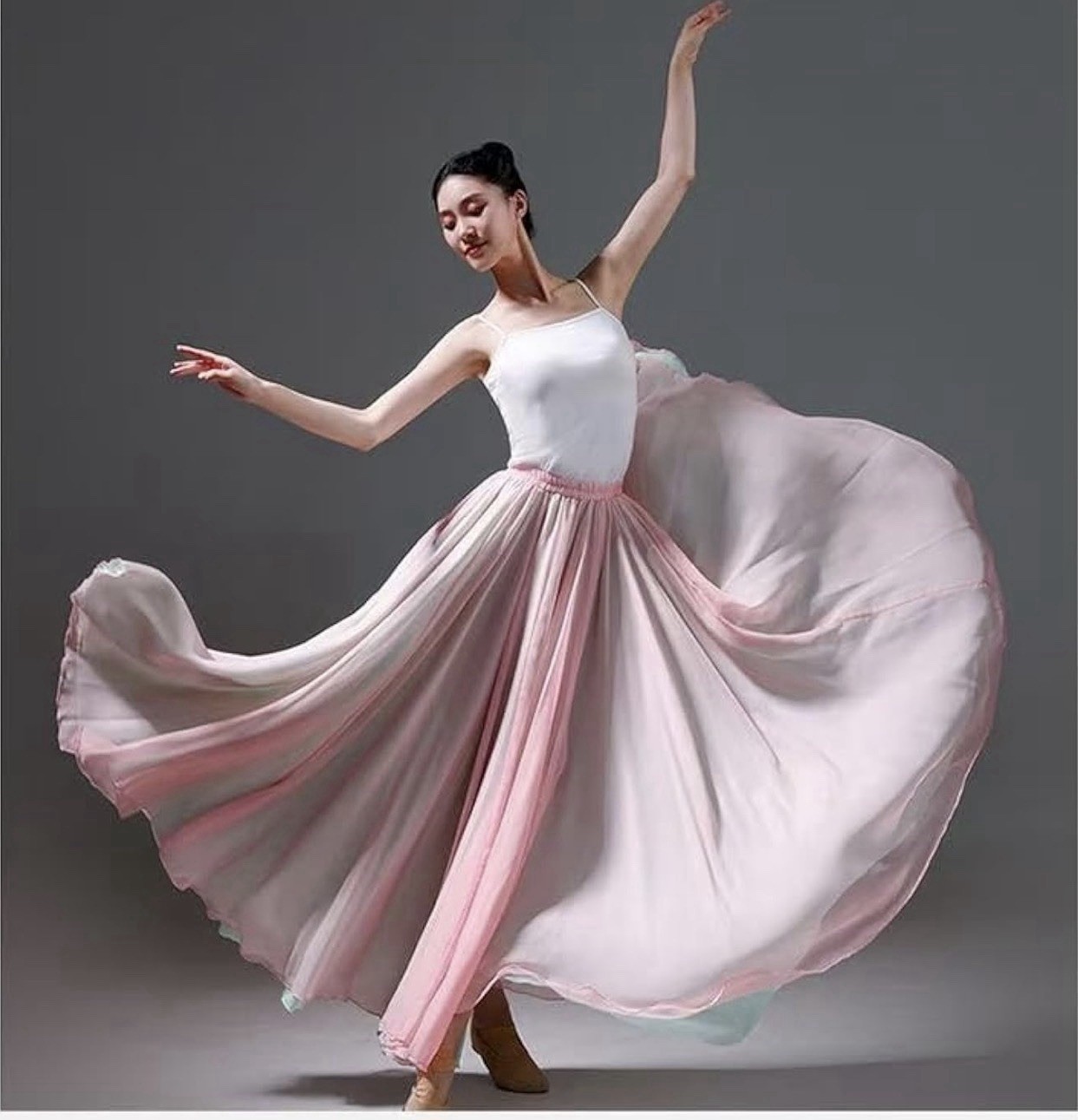 D8/D10 Double Layer Chiffon Dance Skirt Pastel Pink Gradient Lyrical Ballet