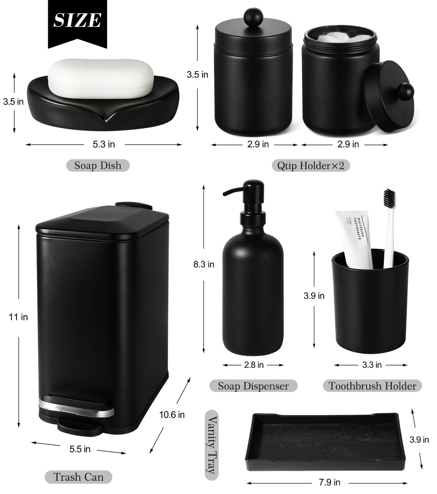 как выглядит Black Bathroom Accessories Set, 7 Pcs Matte Black Bathroom Accessory Set with... фото