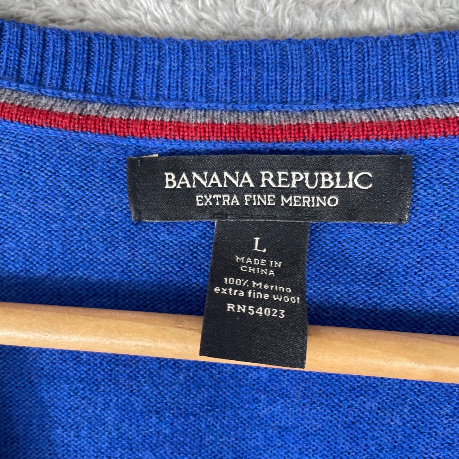 Banana Republic Sweater Mens Large Blue Extra Fine Merino Wool V-Neck Pullover