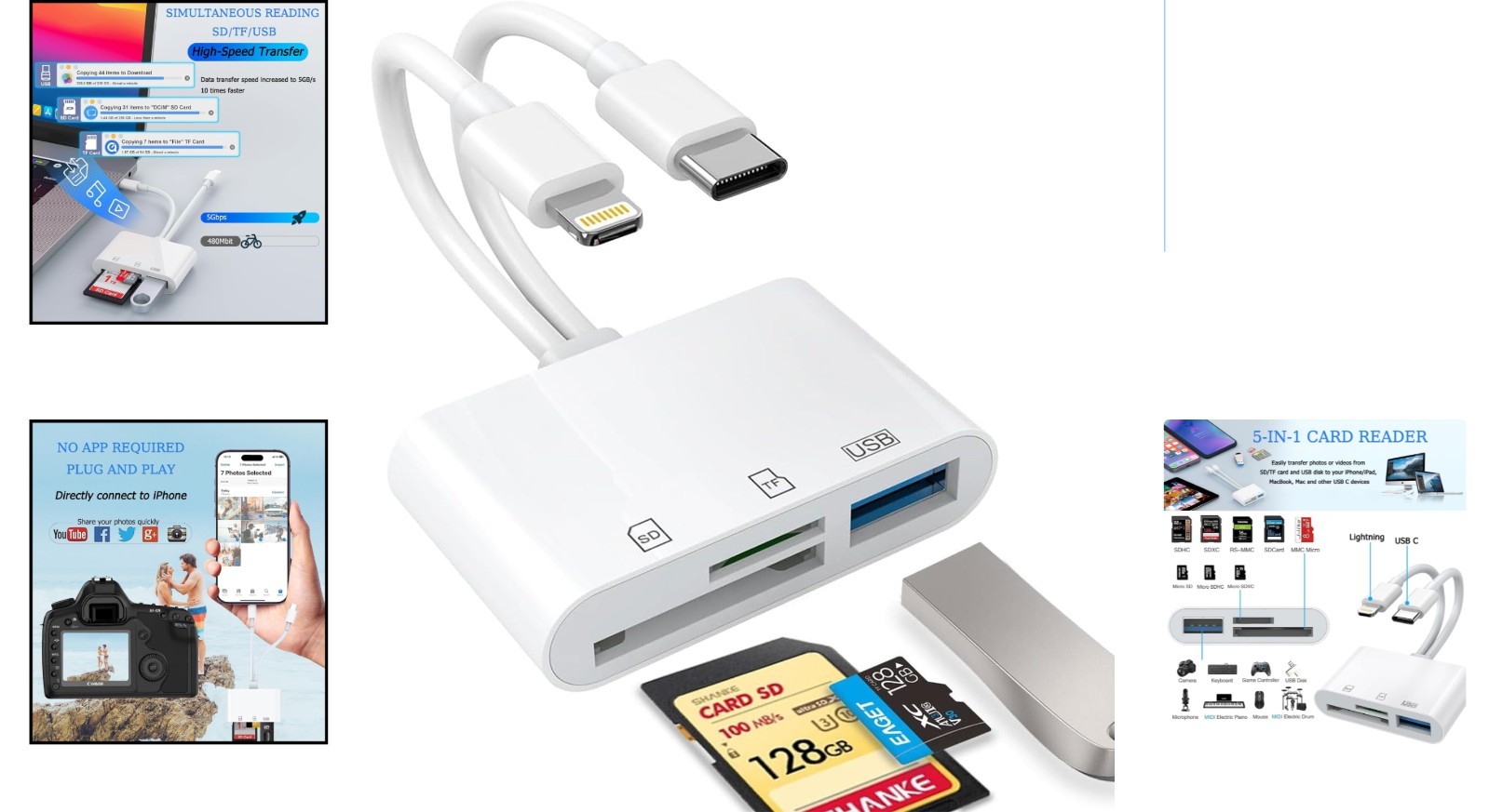 Compact USB C Dual Port Card Reader for Quick Transfers - iOS Mac Compatible