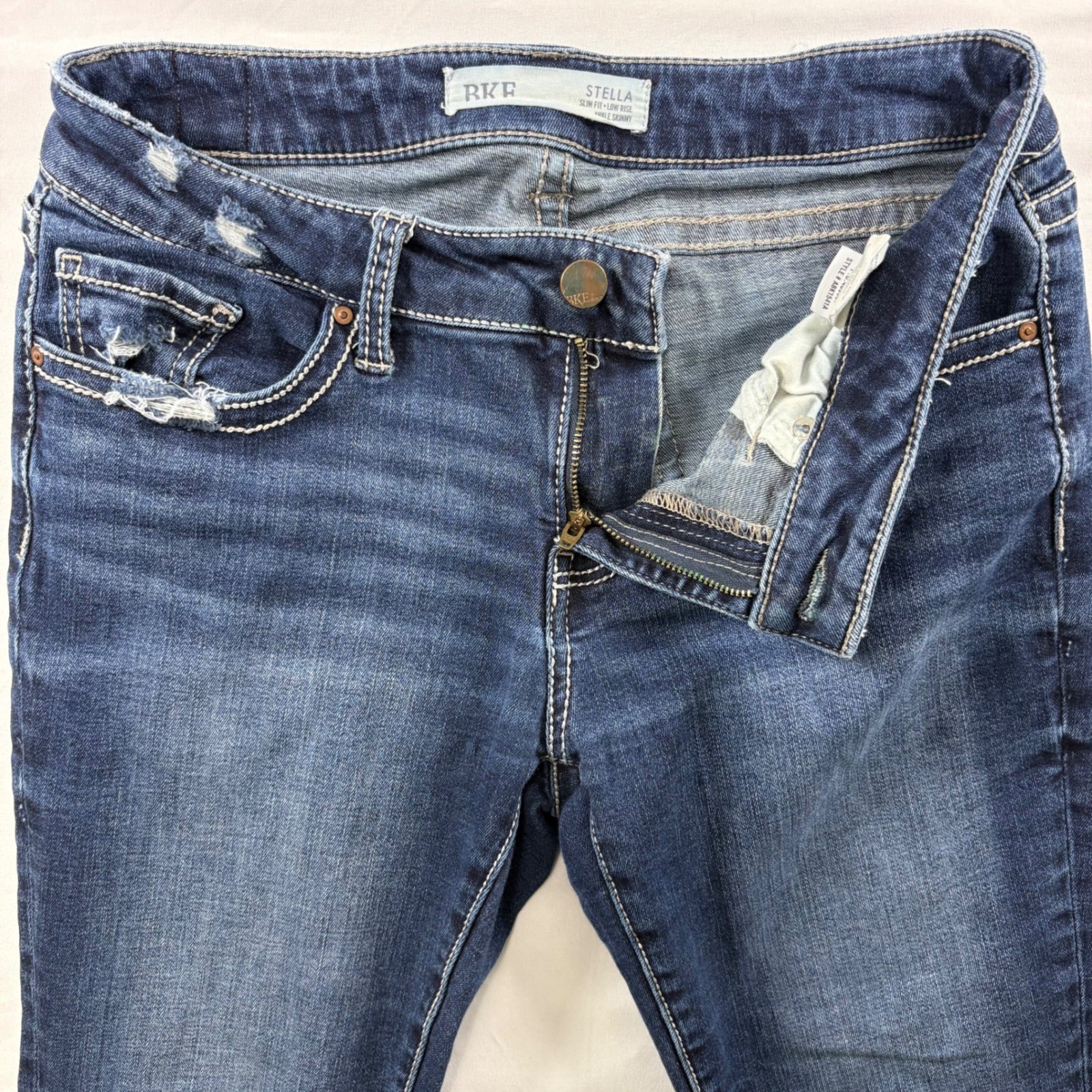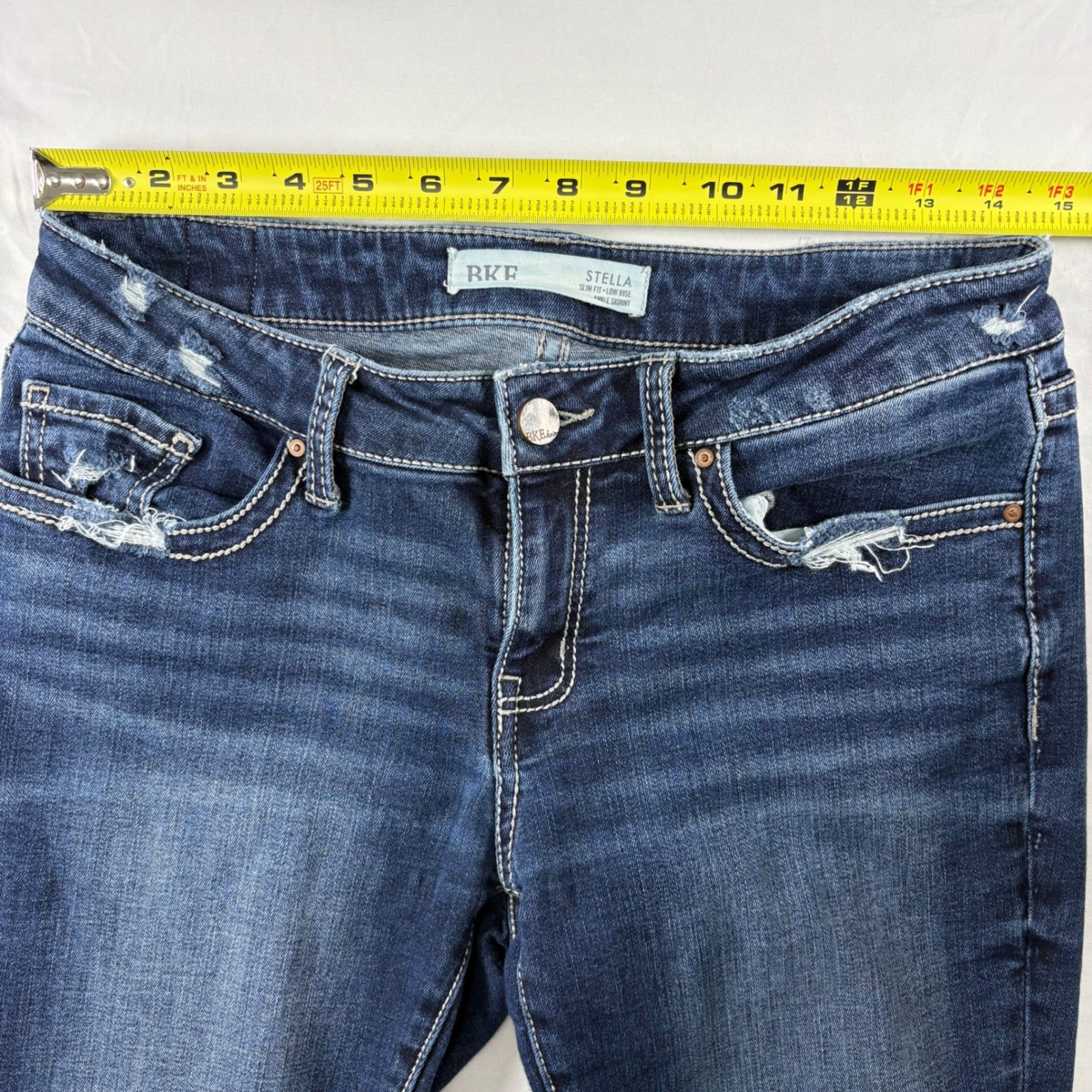 как выглядит BKE Stella Ankle Skinny Jeans Womens 30 Dark Wash Low Rise Distressed ABK1541A фото