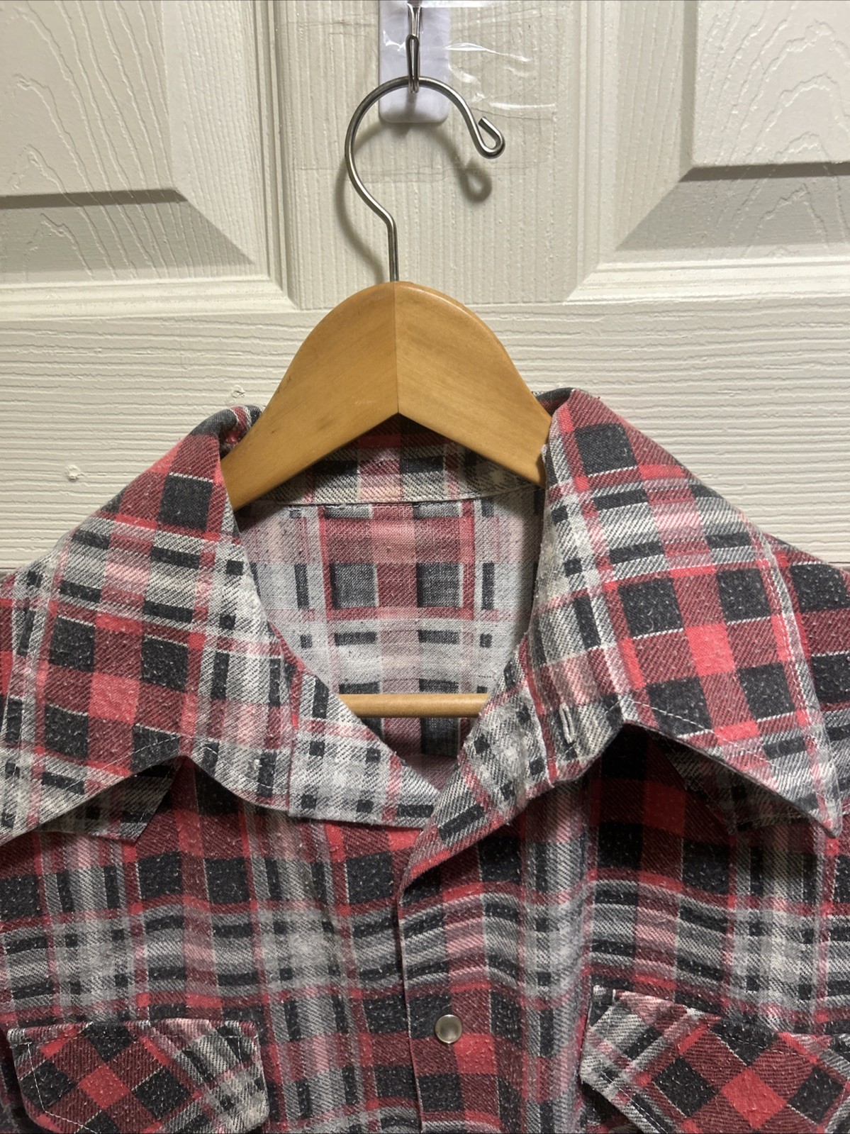 Vintage 1960s-70s Pearl Snap Plaid Red Button Up Shirt