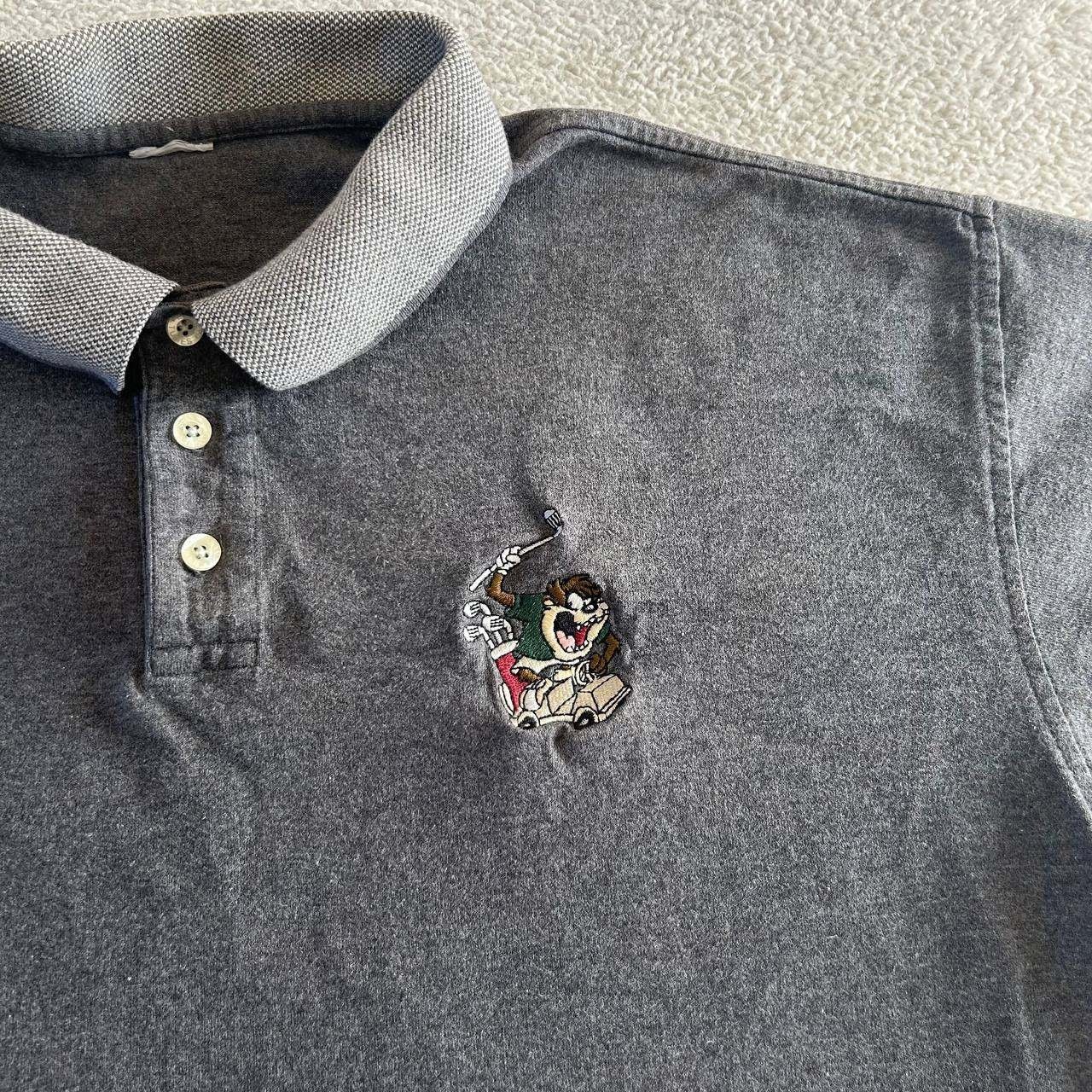 как выглядит Vintage 90s Looney Tunes Taz Tasmanian Devil Golf Embroidered Polo Shirt Gray L фото