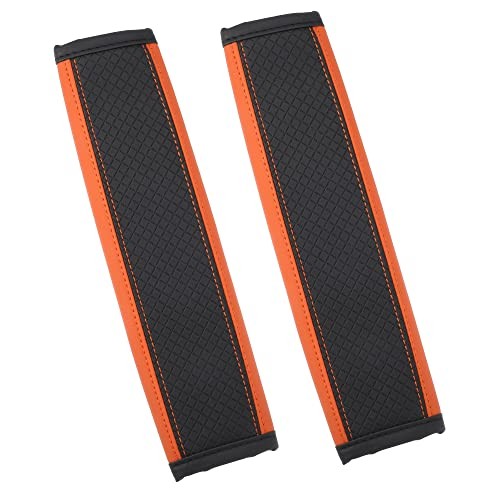 2pcs Universal Seat Belt Shoulder Pad Faux Leather Car Safety Strap Orange