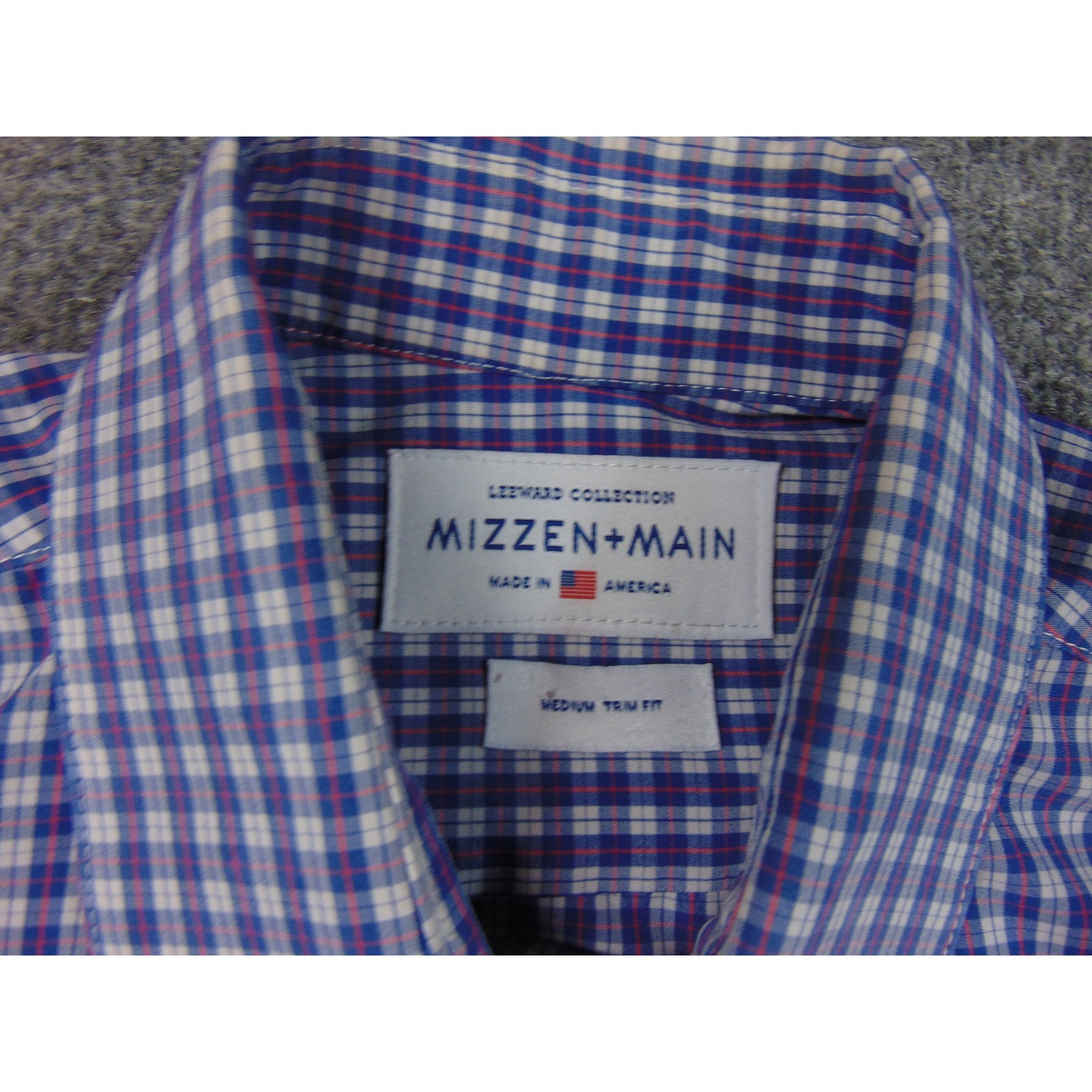 Mizzen Main Leeward Collection Mens Medium Trim Fit Blue Gingham Dress Shirt USA