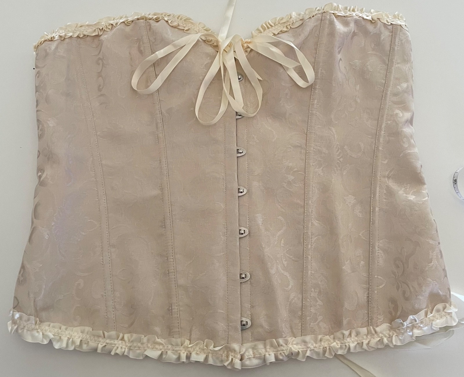Corset Size L Boned Cream Ruffles Antique Floral Laceup PERFECT Wedding