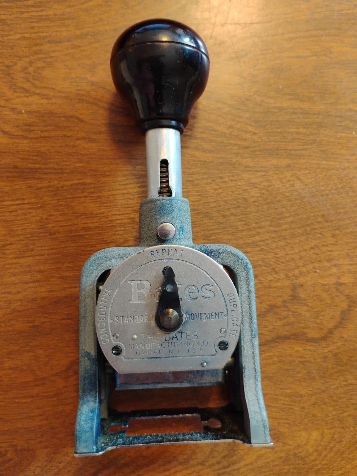 • Vintage BATES NUMBERING MACHINE 6 Wheels Style E Stamper