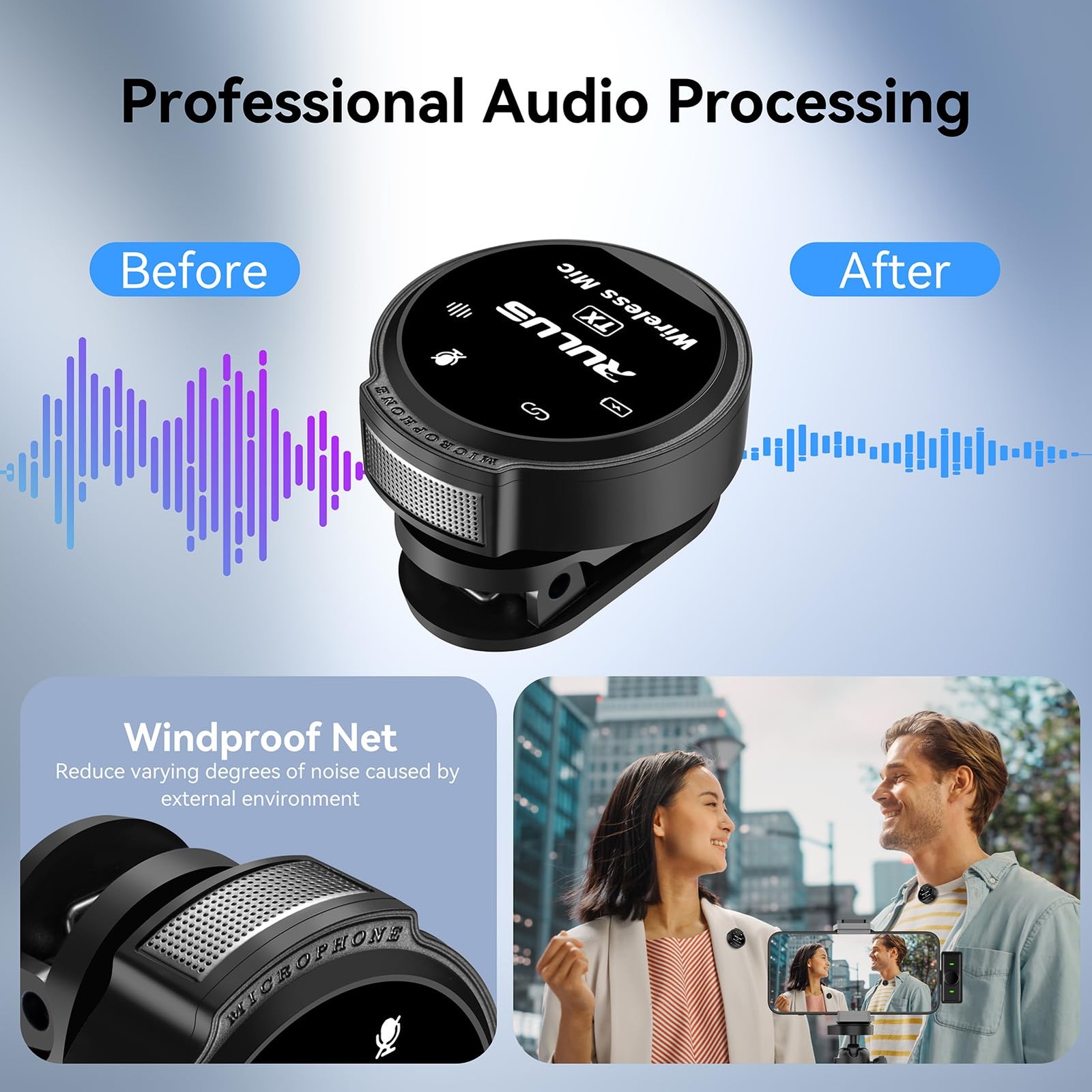 Wireless Lavalier Microphone for iPhone, 800mA/H Charging Case 30H Lapel Wire...