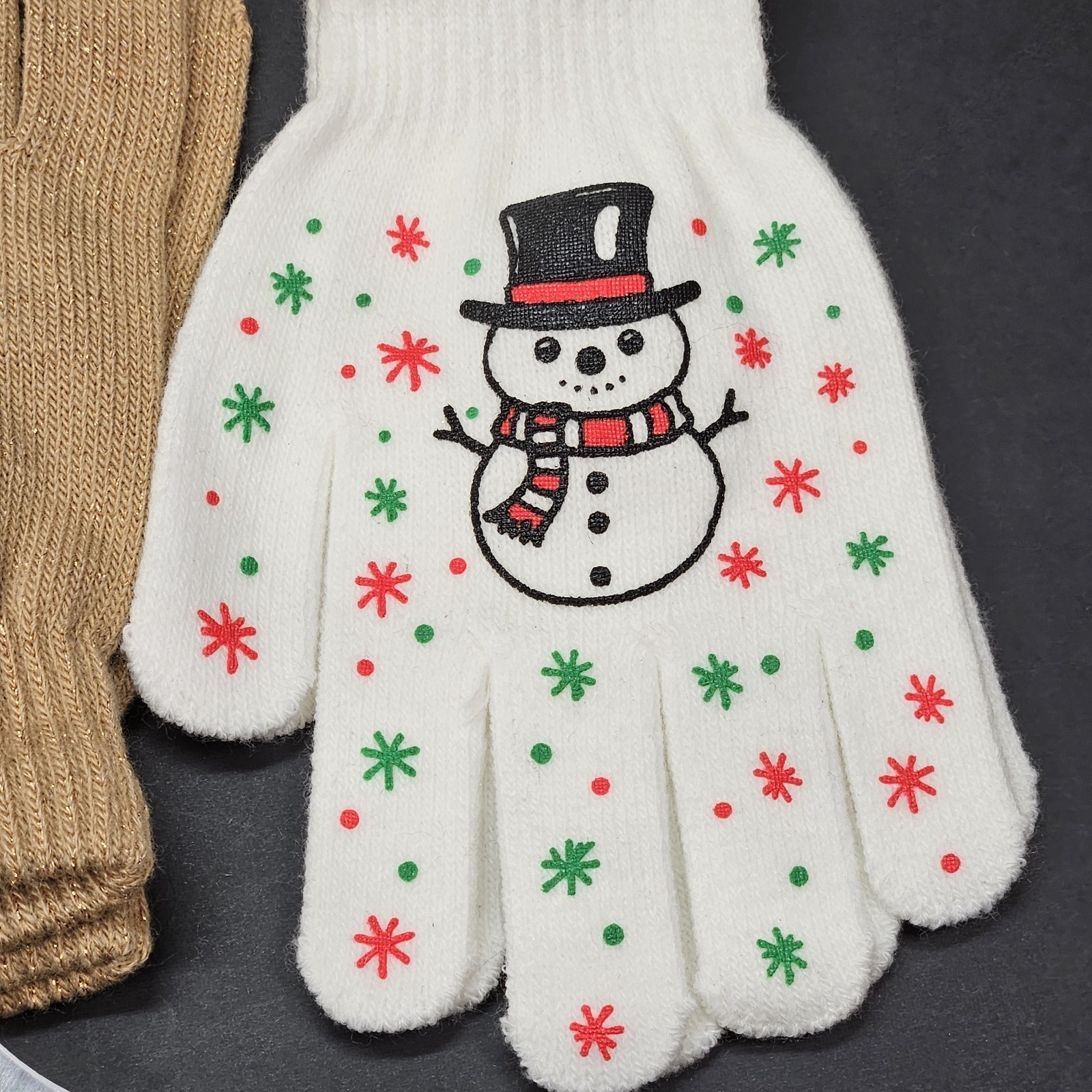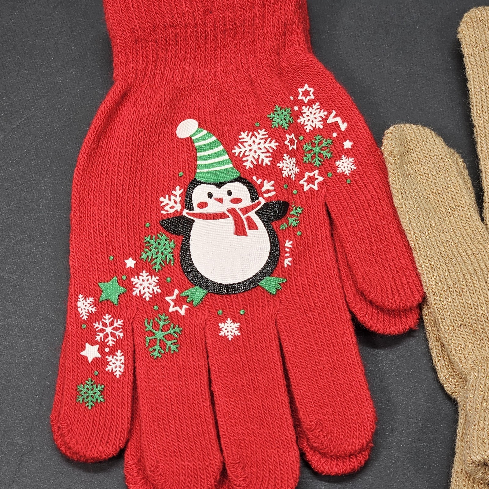 Youth Gloves One Size Bundle Of 3, Red White And Sparkling Tan Christmas Themed