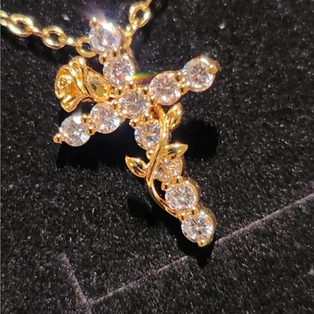 как выглядит Gold Cross Necklace for Women Dainty Fashion 14K Gold Plated Zircon Rose Flower фото