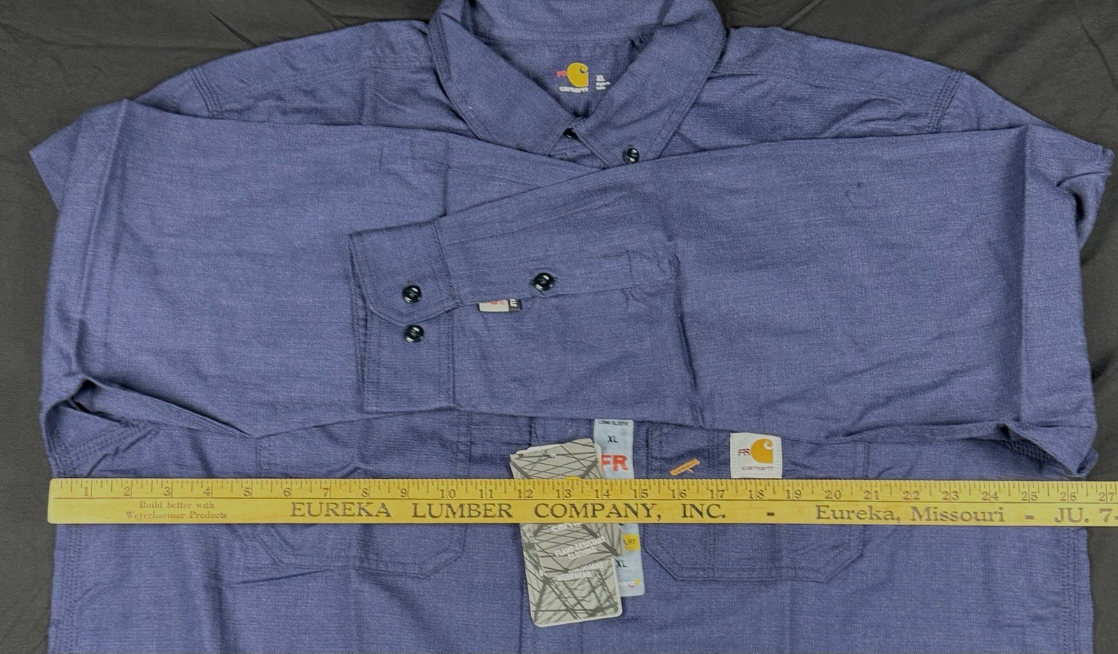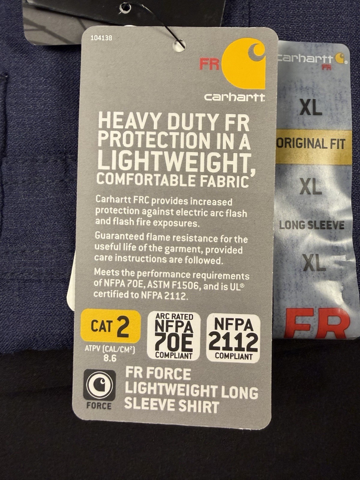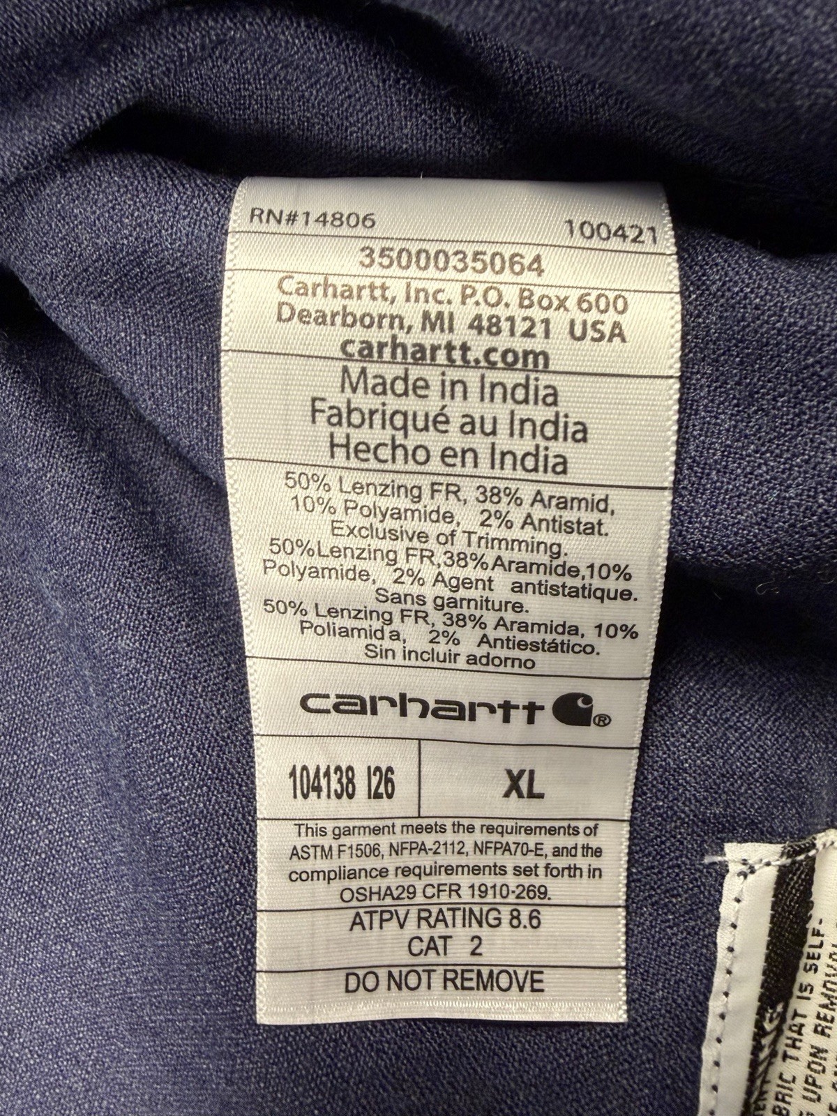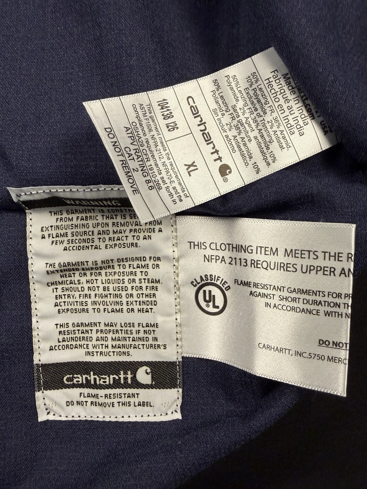 как выглядит Carhartt FR Shirt Mens XL Navy Long Sleeve Button Down Flame Resistant CAT 2 фото