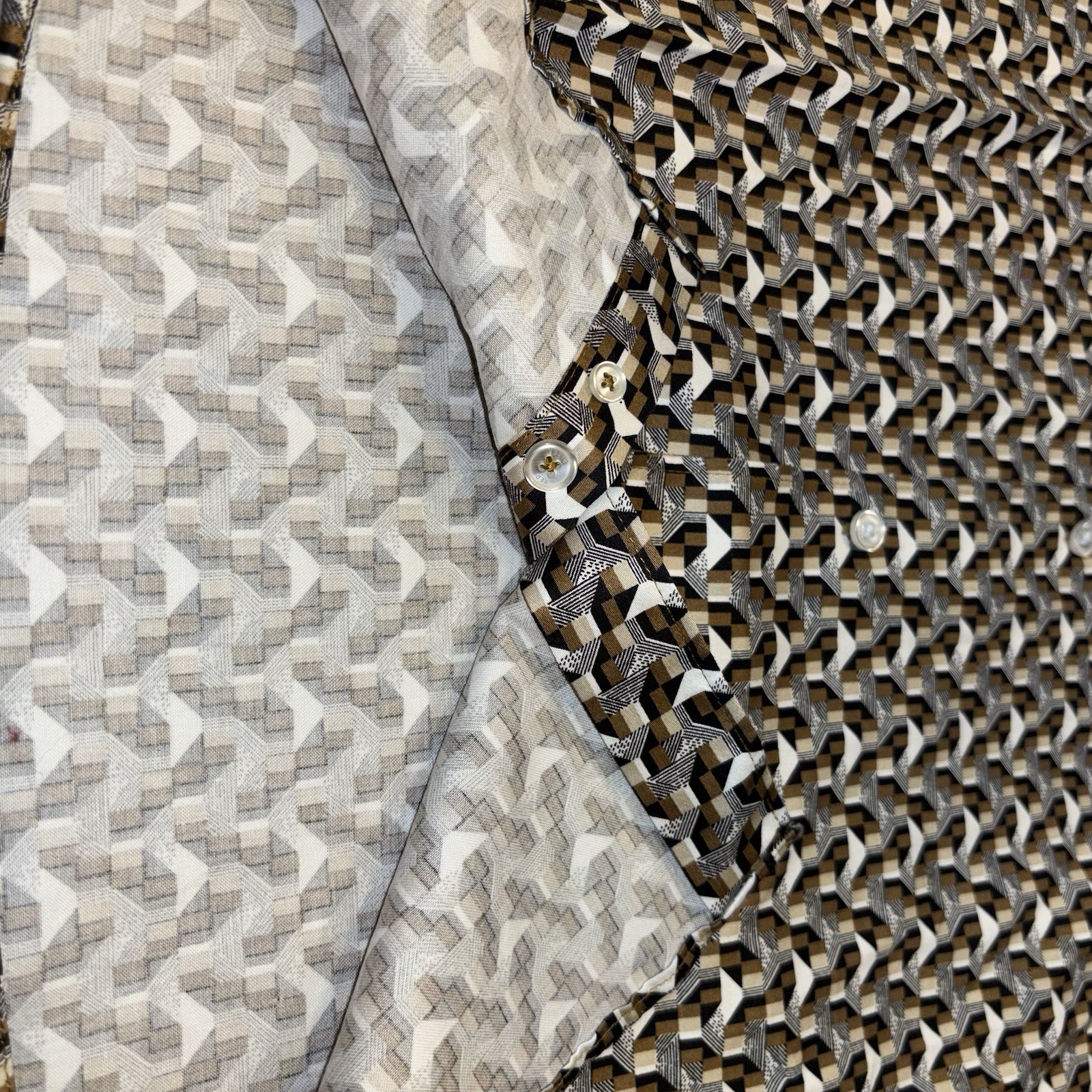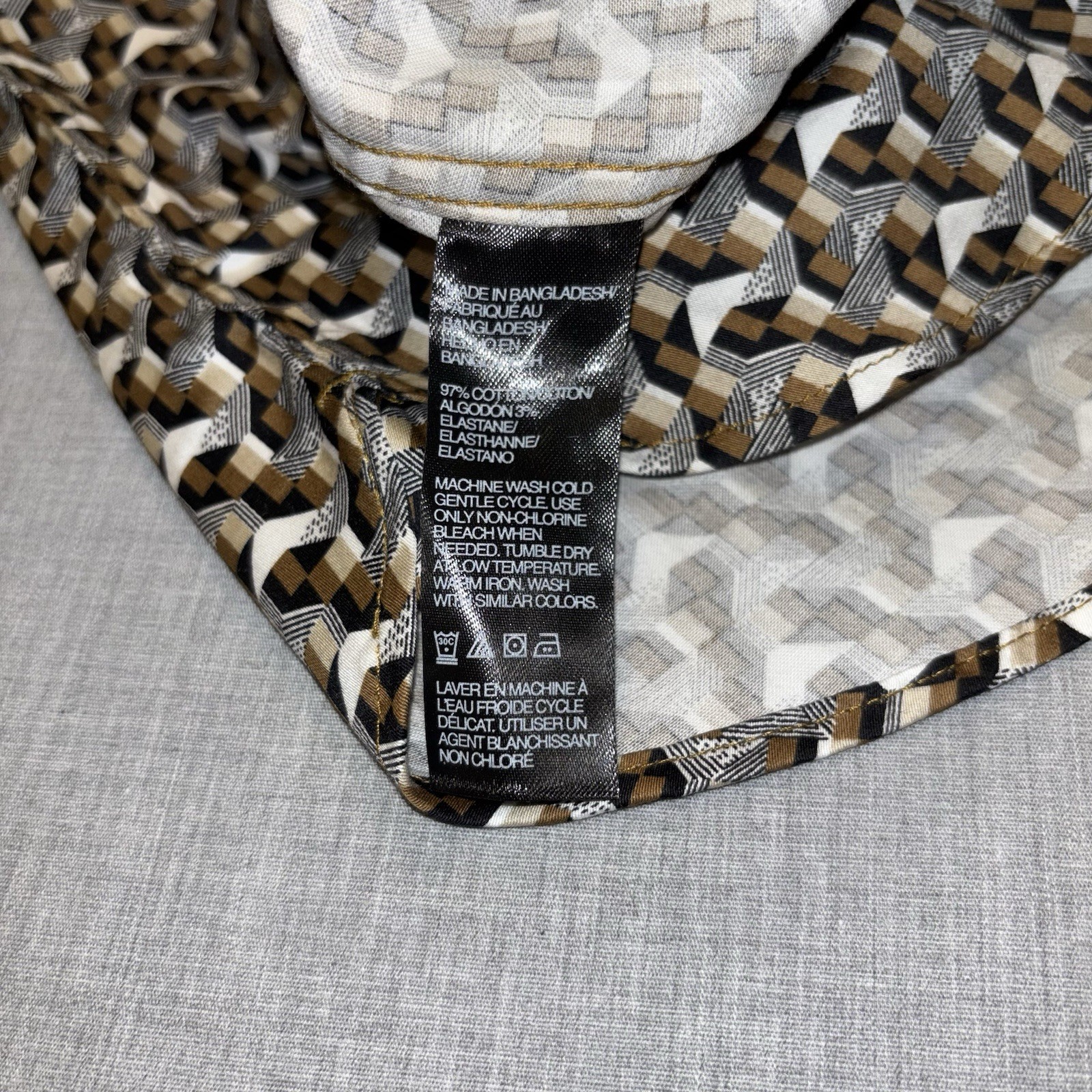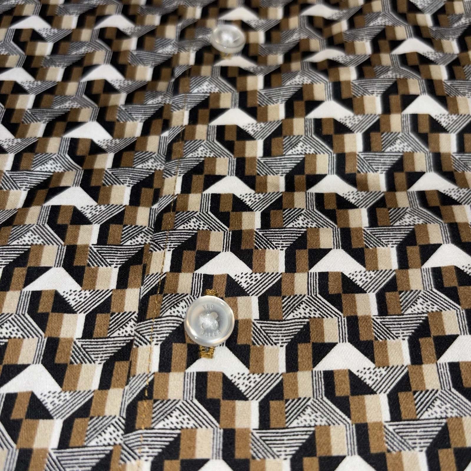 как выглядит TED BAKER Shirt Men L Soren Geometric Dull Gold Stretch Cotton 175 Button Down фото