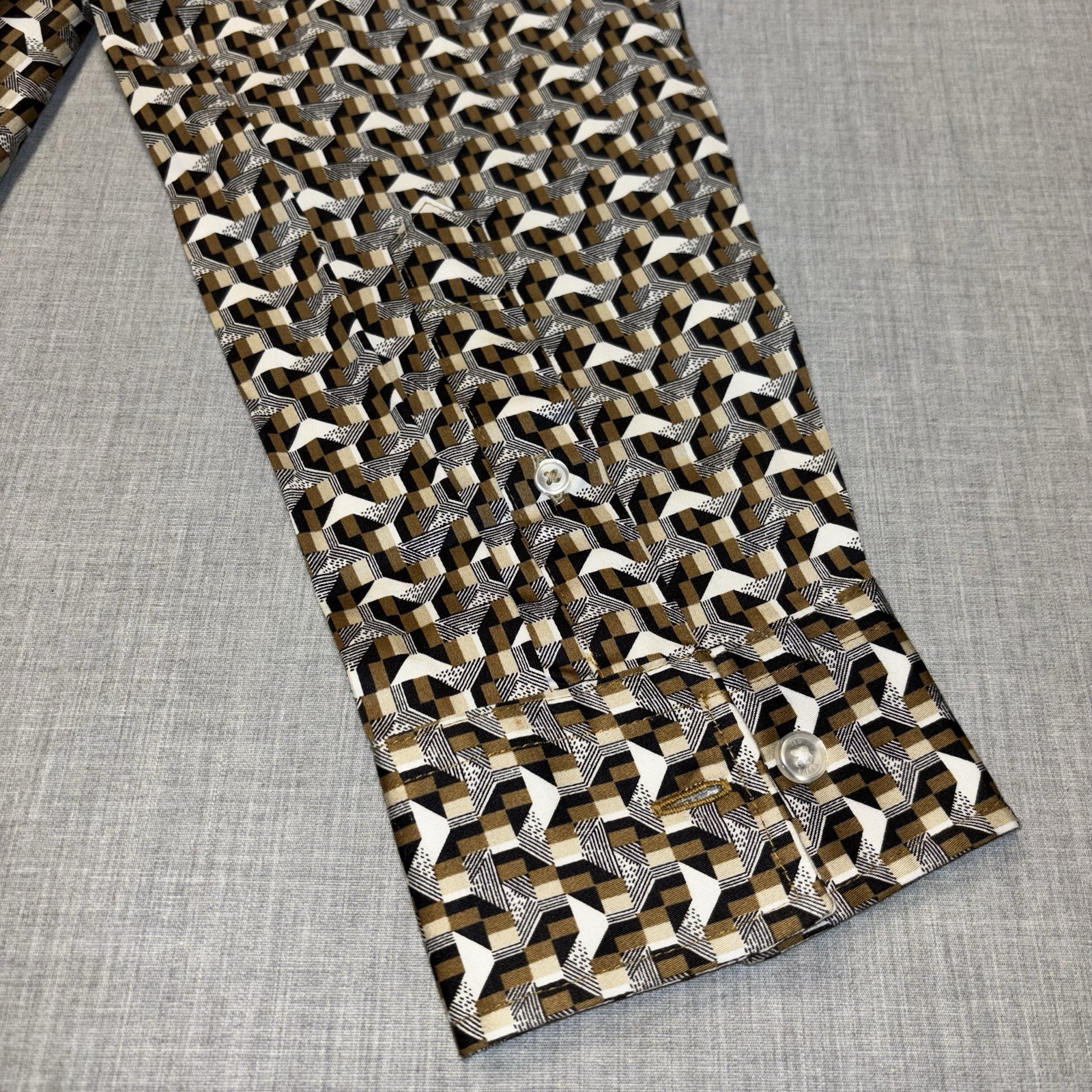 TED BAKER Shirt Men L Soren Geometric Dull Gold Stretch Cotton 175 Button Down