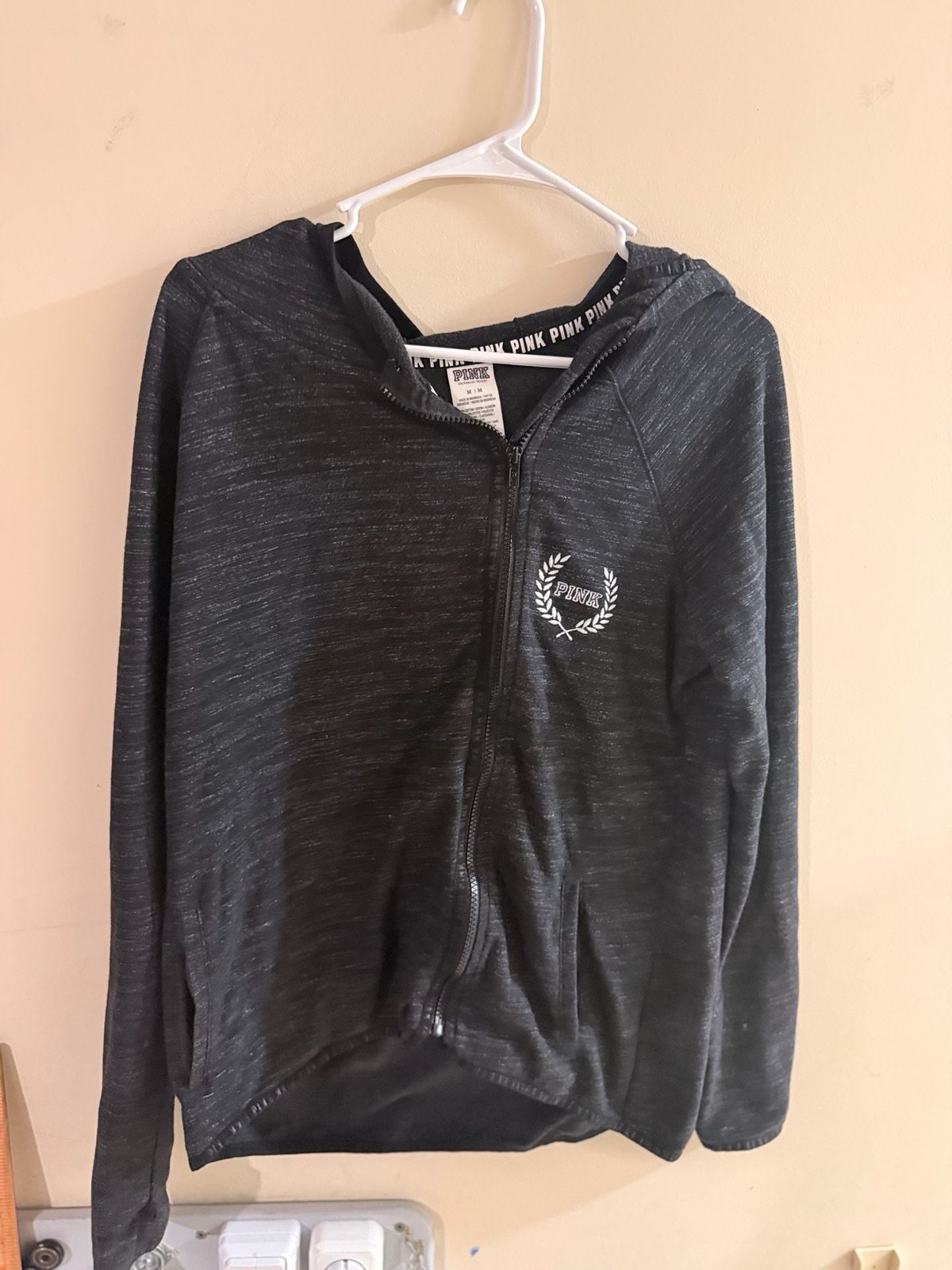 Victoria's Secret PINK Dark Gray Marl High-Low Full Zip Hoodie Jacket Medium