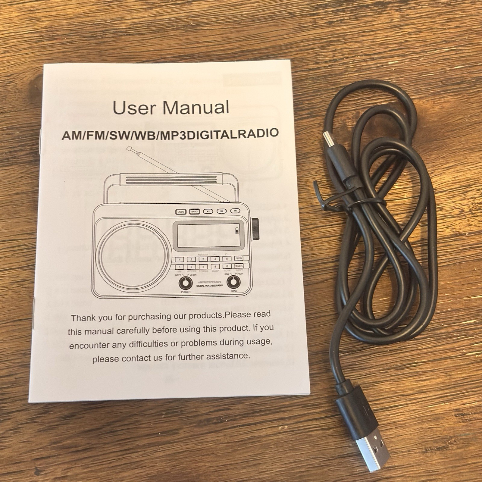AM/FM Shortwave Radio 4000mAh Rechargeable NOAA Weather Alert USB SD MP3 Player