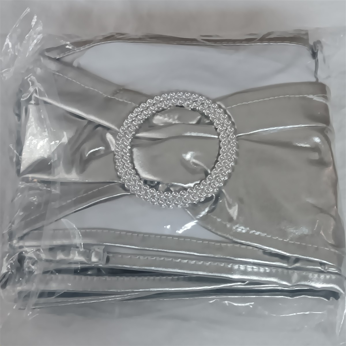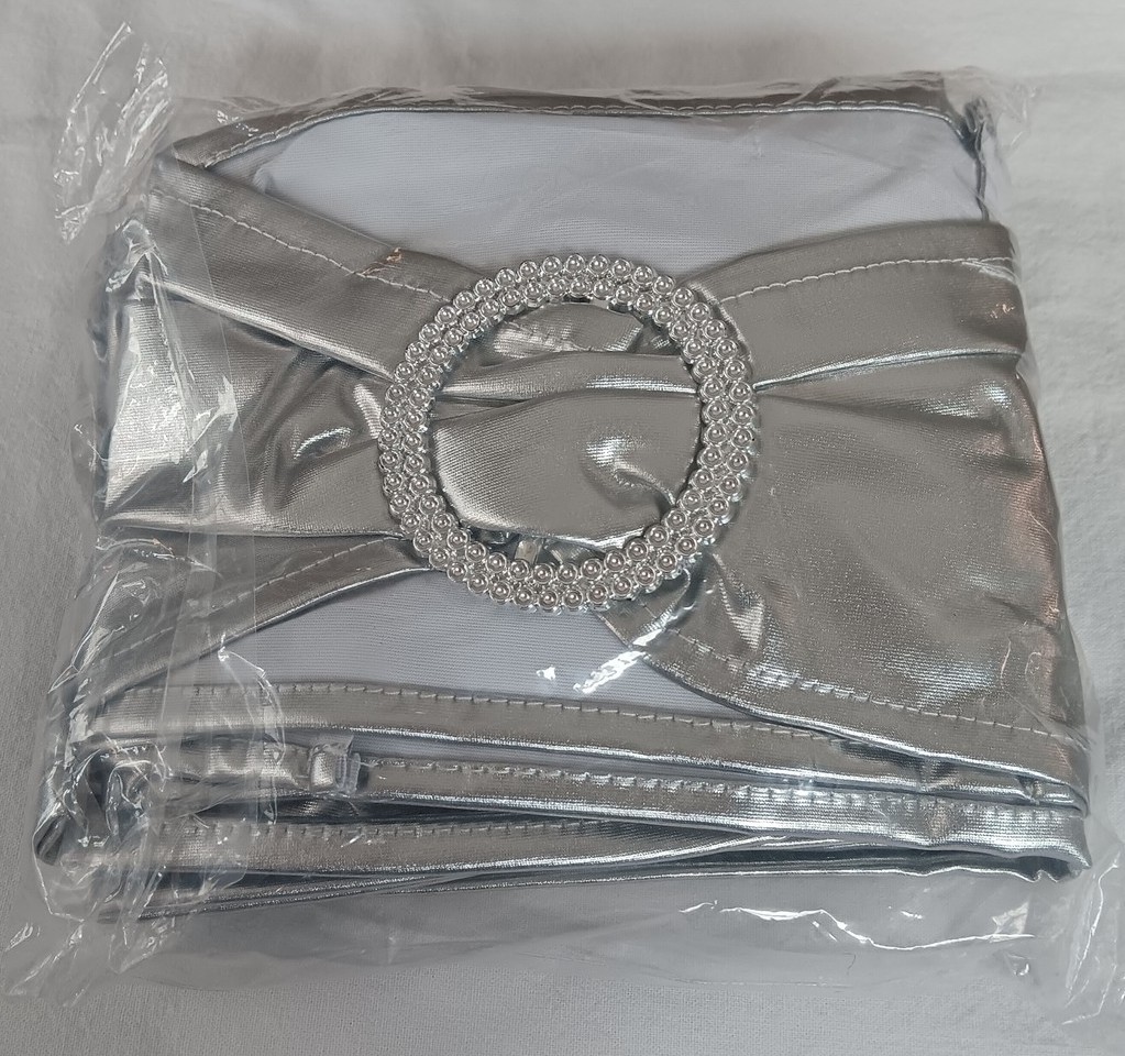 10 Chair Sashes Bows Silver Lame Stretch with Slider Buckle Party Wedding