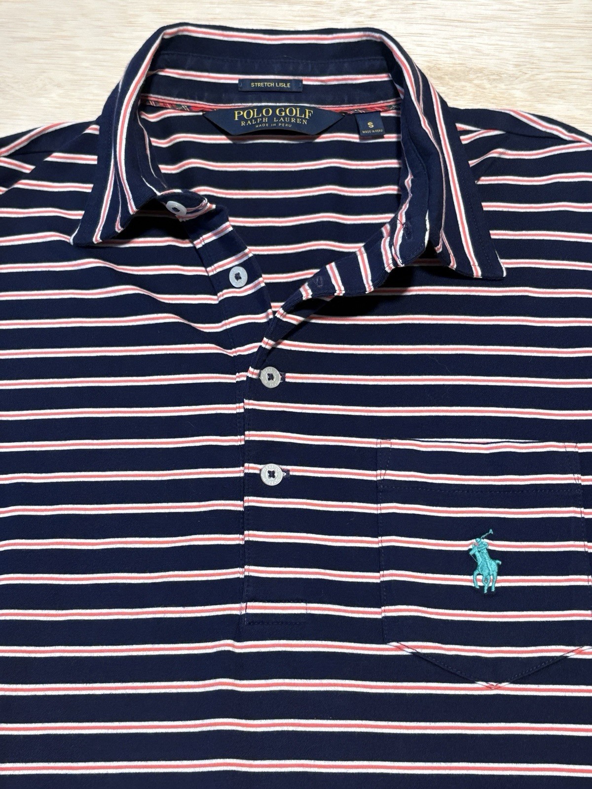 Polo Golf Ralph Lauren Shirt Mens L Navy Blue Striped Stretch Lisle Embroider