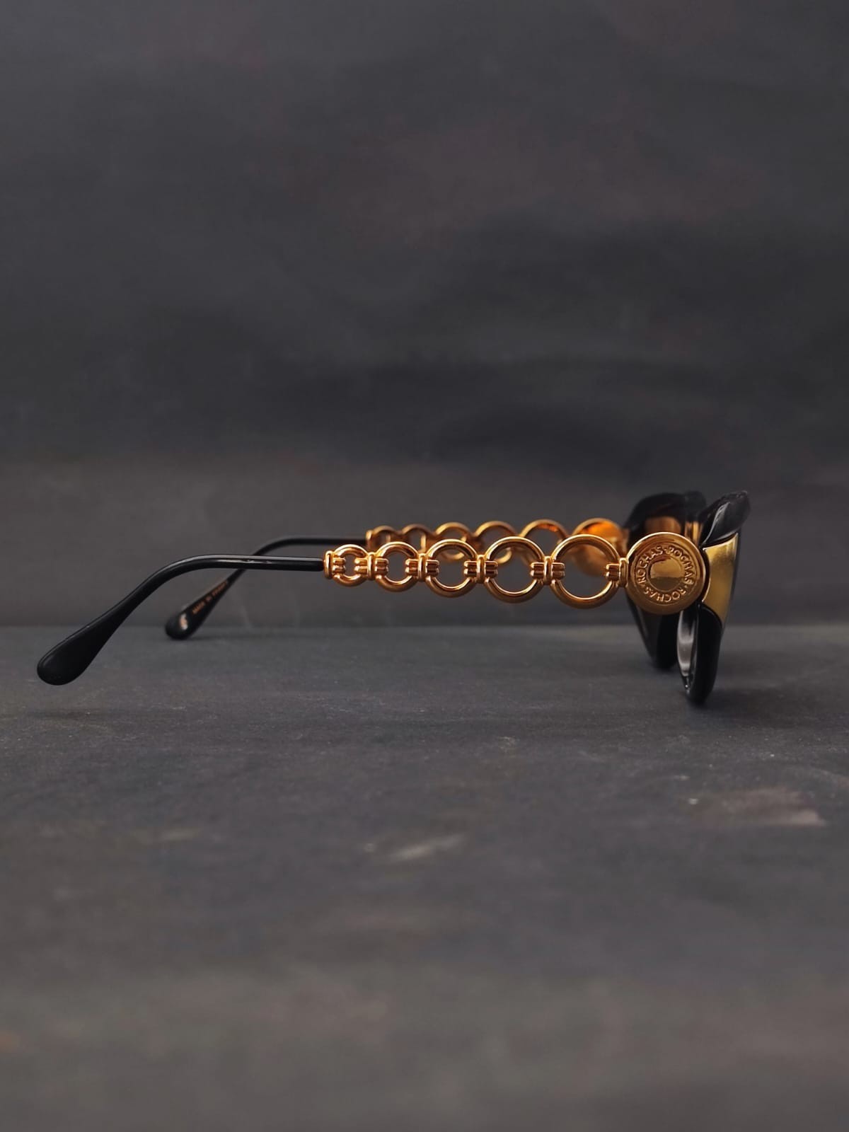 как выглядит Vintage Rochas Paris Sunglasses 9004 01 Gold Chain Temple Black France фото