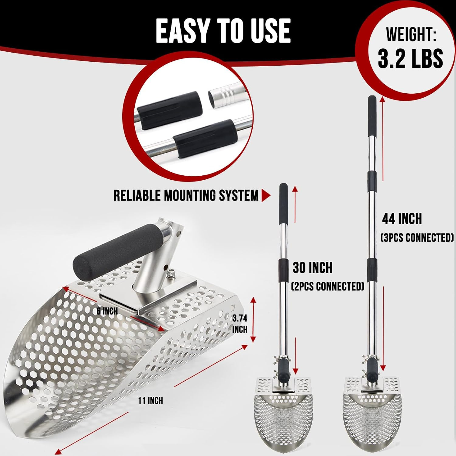 Stainless Steel Sand Scoop with Long Handle for Metal Detecting and Beach Use