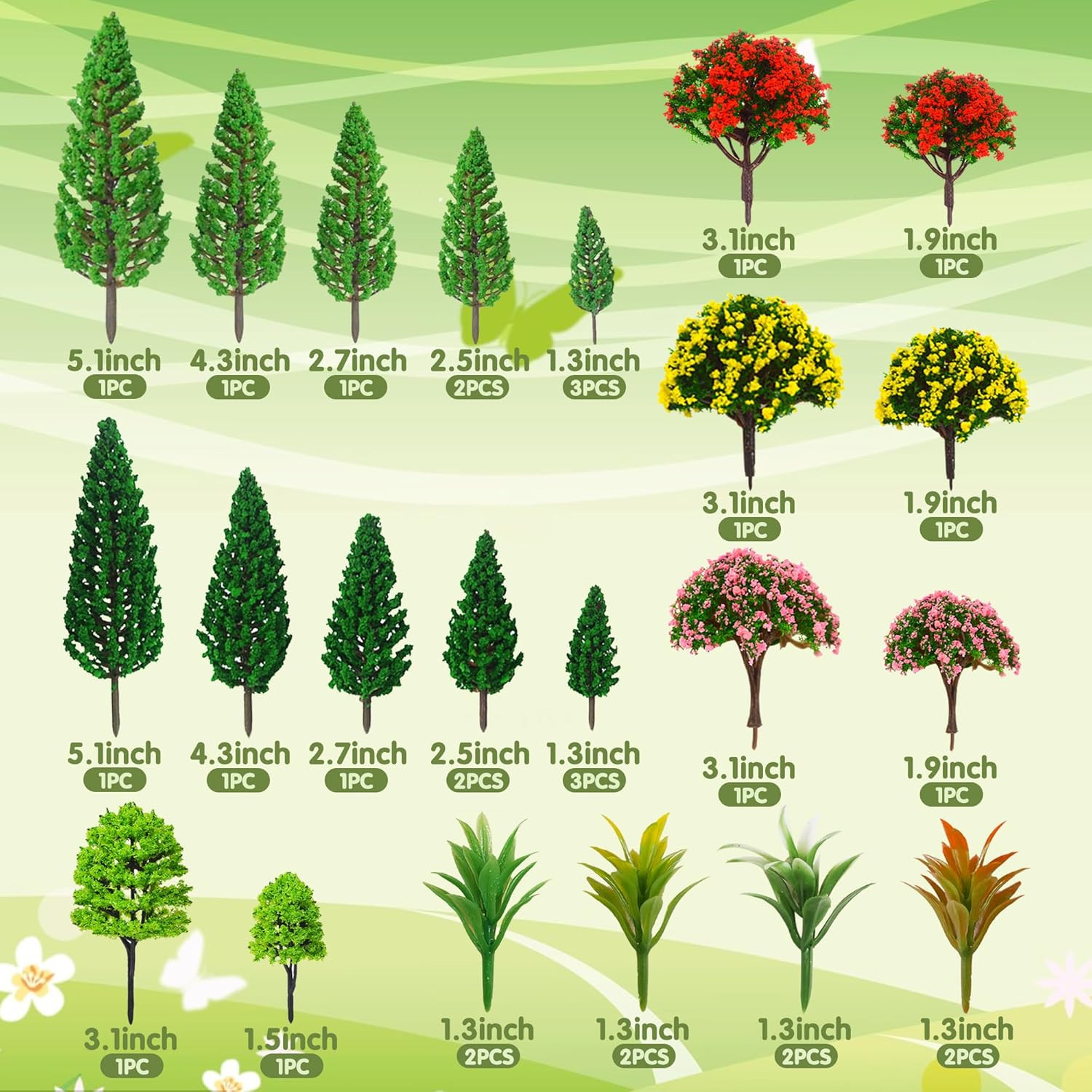 32-Piece Mixed Model Trees for Dioramas, Miniature Landscapes and Railways
