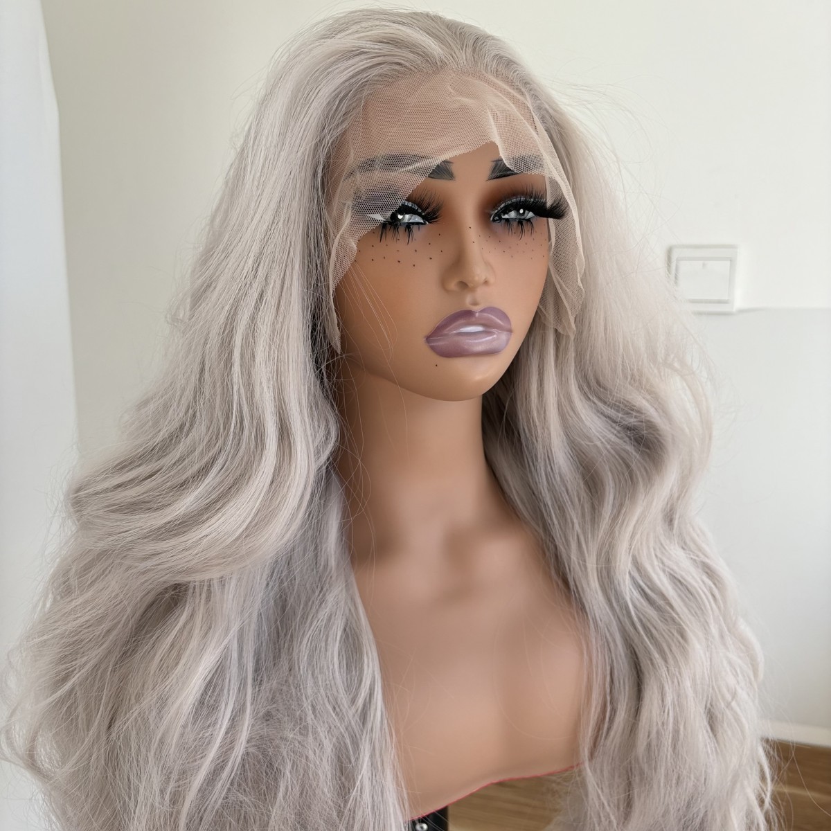 как выглядит Long Wavy Soft HD T Lace Front Wig Heat Resistant Hair Silver grey фото