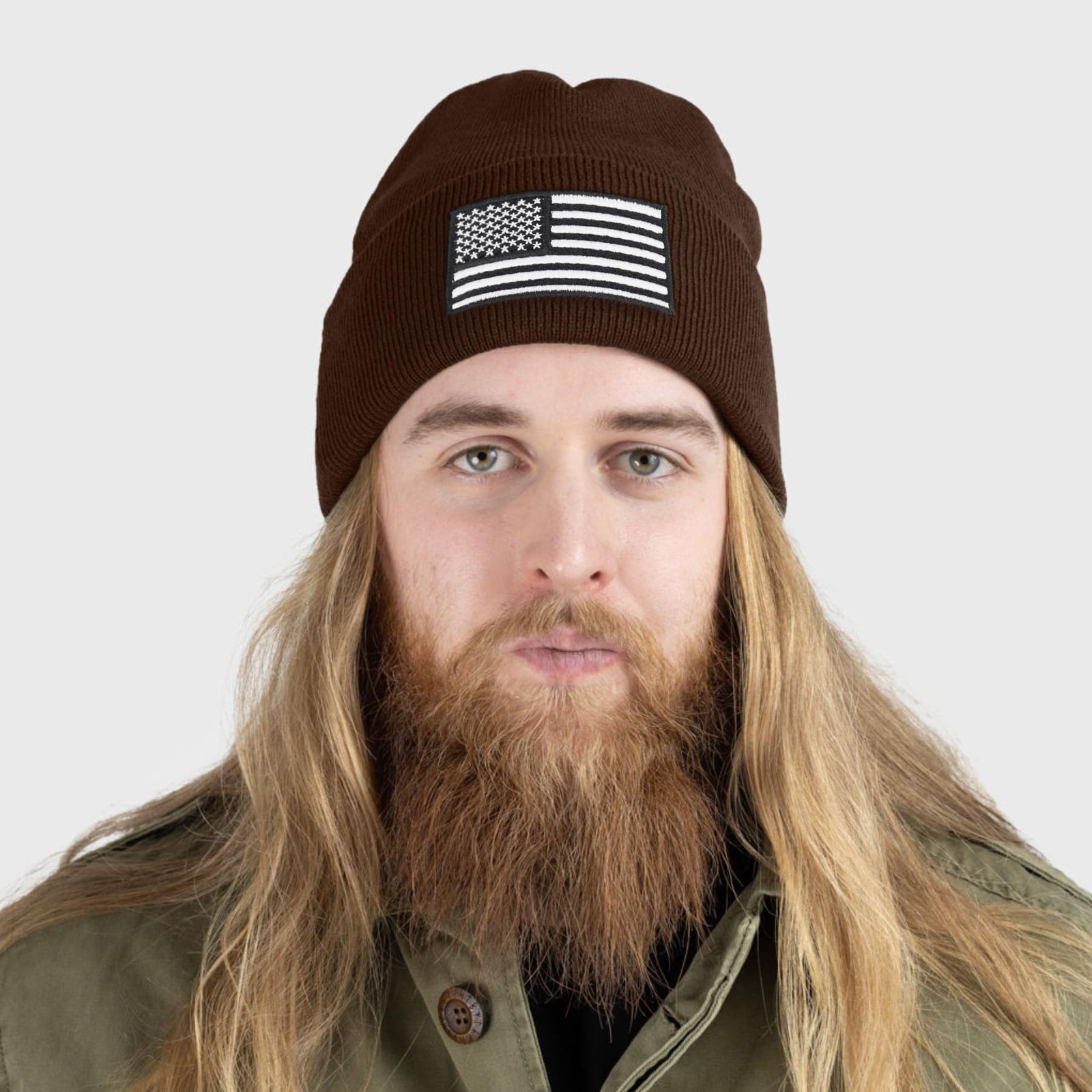 как выглядит American Flag Embroidered Beanie Winter Hat for Men Women, Multi-Season Milit... фото