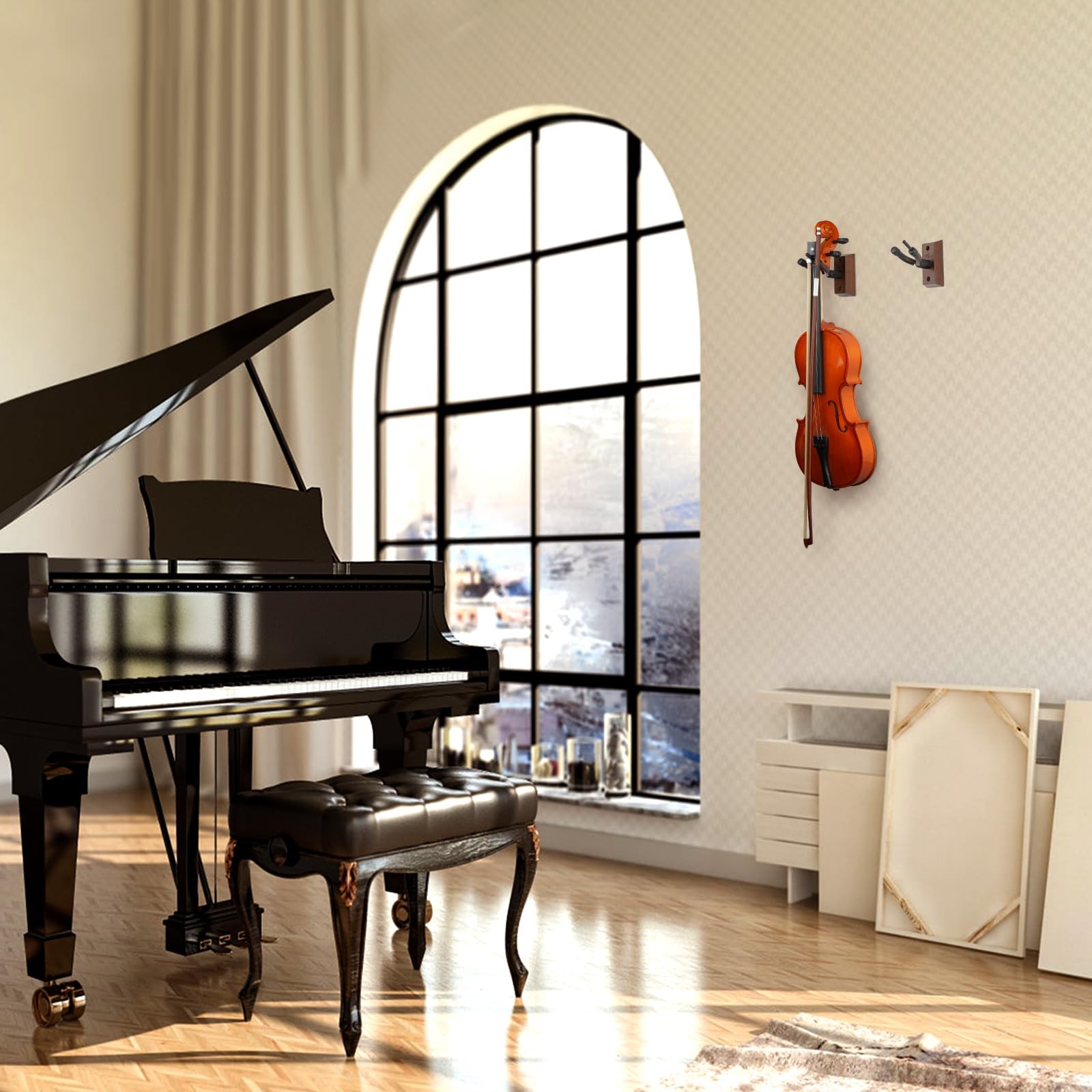 Violin Wall Mount, 2 Pack Hardwood Violin Hanger with Bow Holder, Vertical Wa...