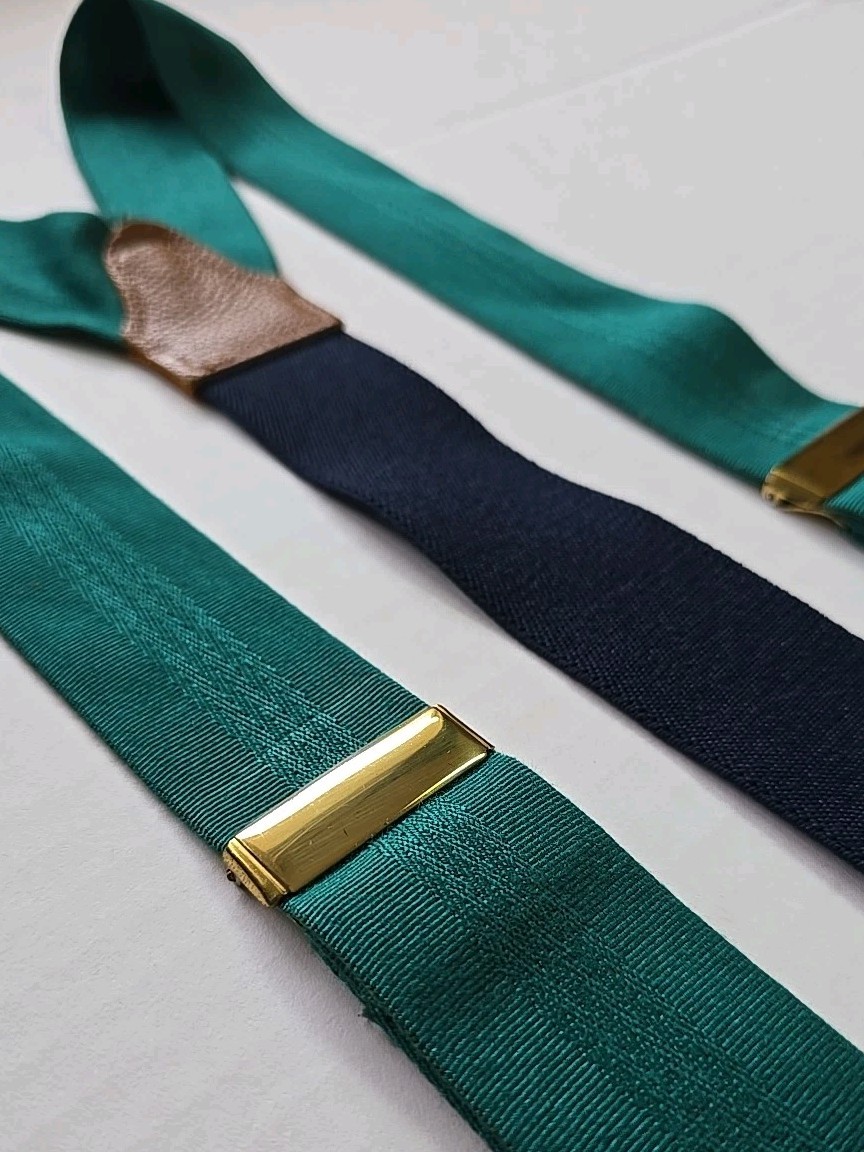 как выглядит Green, Navy Suspenders Tan Soft Leather Braces Button Solid Brass Hardware, USA фото