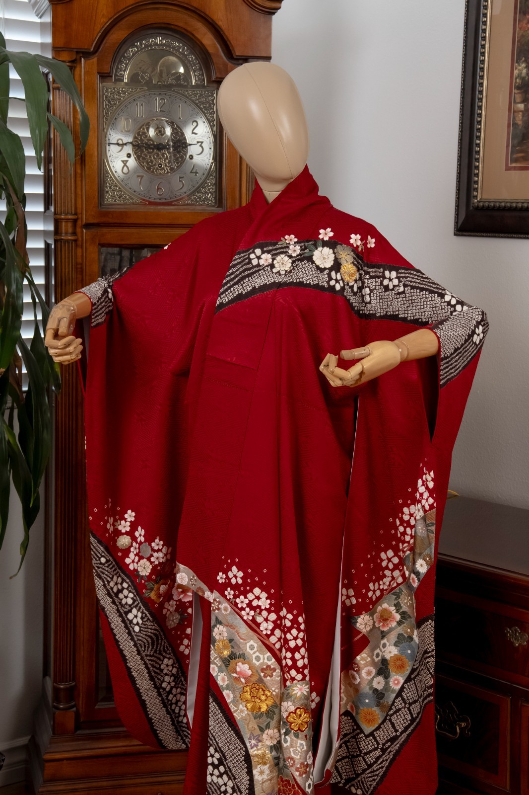 • DEAR VANILLA JAPANESE FURISODE SILK KIMONO WOMEN'S AUTHENTIC JAPAN MADE VINTAGE