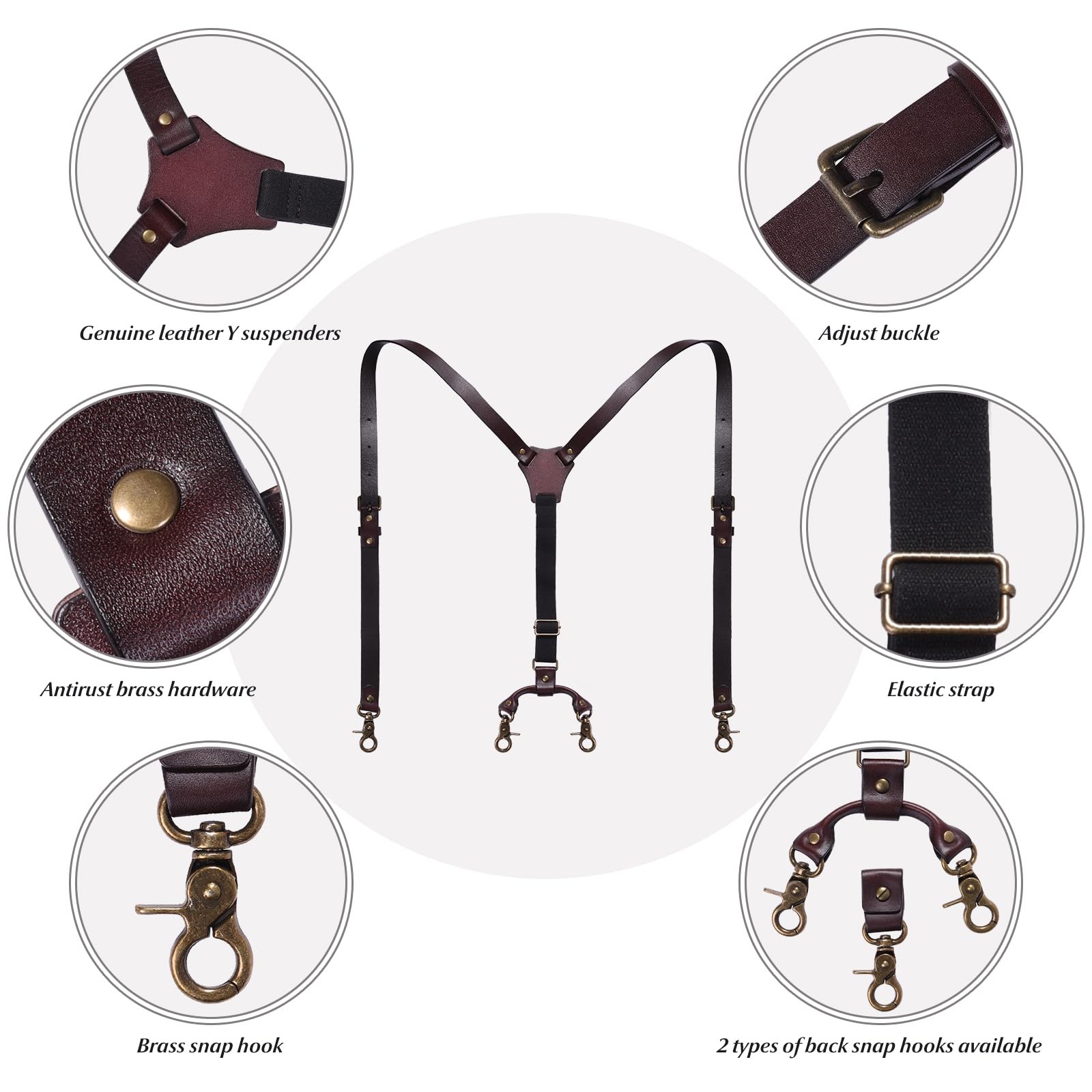 Genuine Leather Suspenders for Men, Heavy Duty Y Back Design Adjustable Suspe...