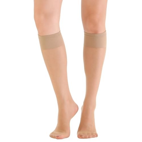 6 Pairs Women's Sheer Knee High Stockings 15D Nude