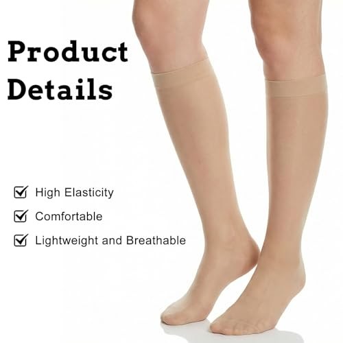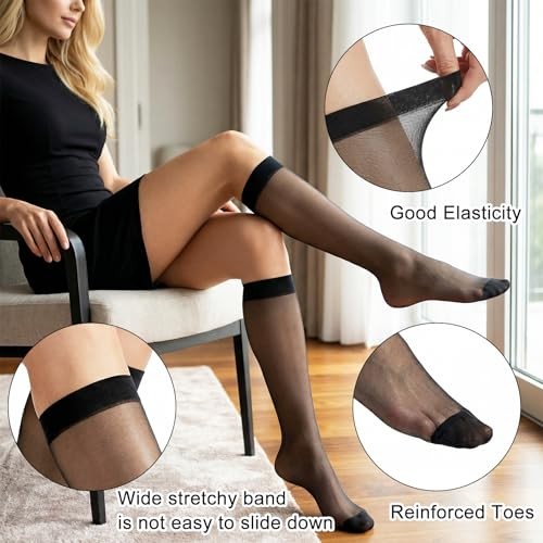 6 Pairs Knee High Stockings for Women Black Skin Nylons Sheer Socks with
