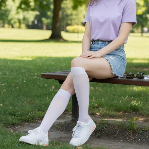6 Pairs White Knee High Stockings, Tight Sheer White Knee High Socks Nylons