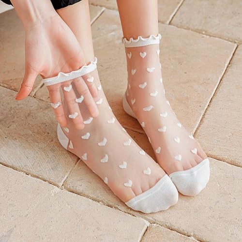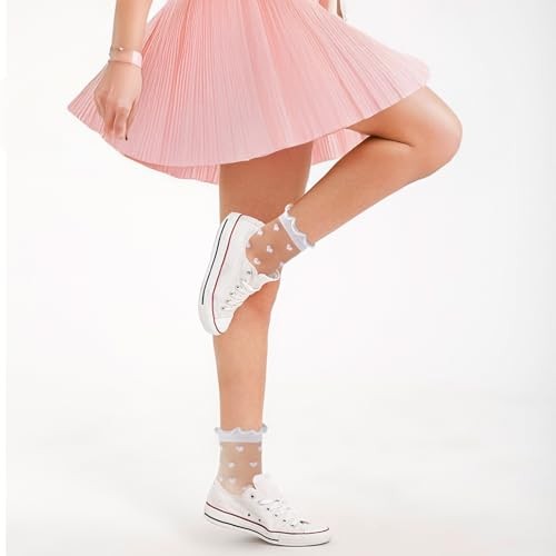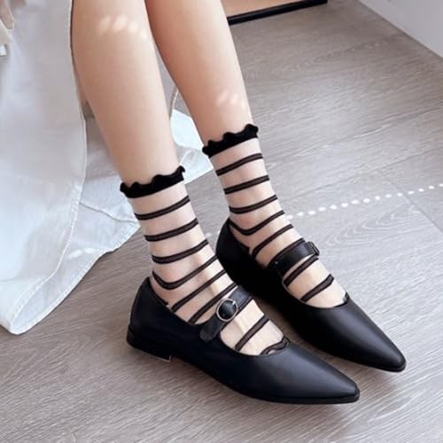 4 Pairs Sheer Socks Womenlack Ruffle Ankle Socks for Women Thin Lace See B