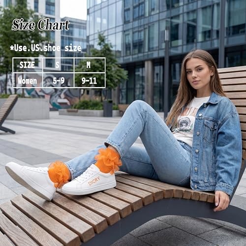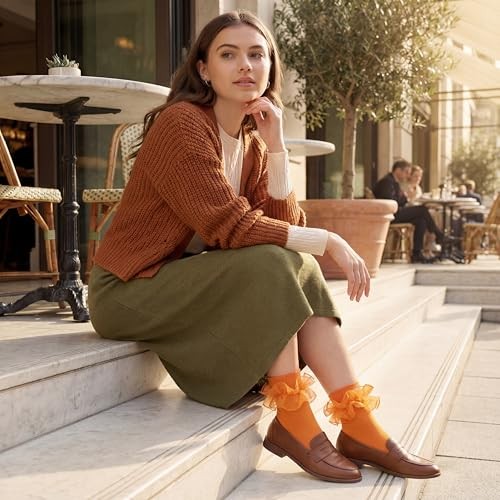 Socks for Women Big Ruffle Socks with Turn Cuff and Double Lace 9-11 Orange
