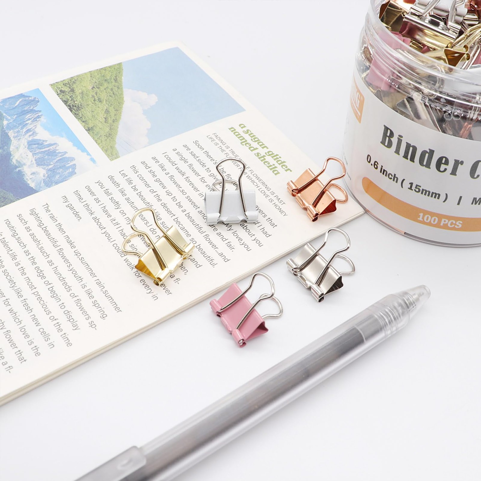 Mini Binder Clips Paper Clip Small Paper Clamps 15mm 5/8 inch 100 Pack Pro